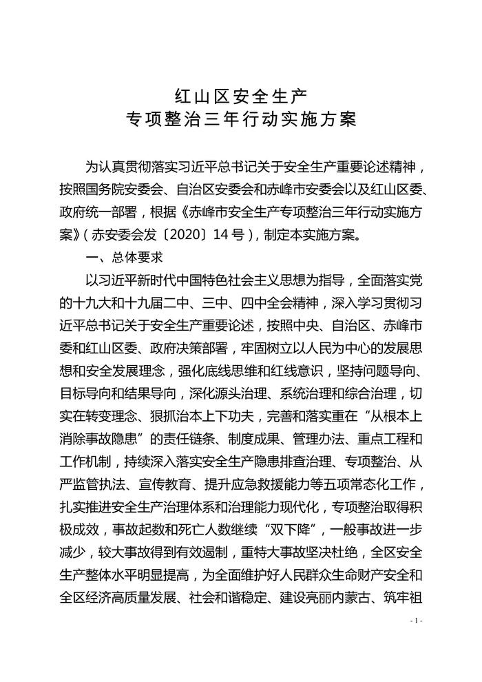 紅山區(qū)安全生產(chǎn)專項整治三年行動實施方案docx