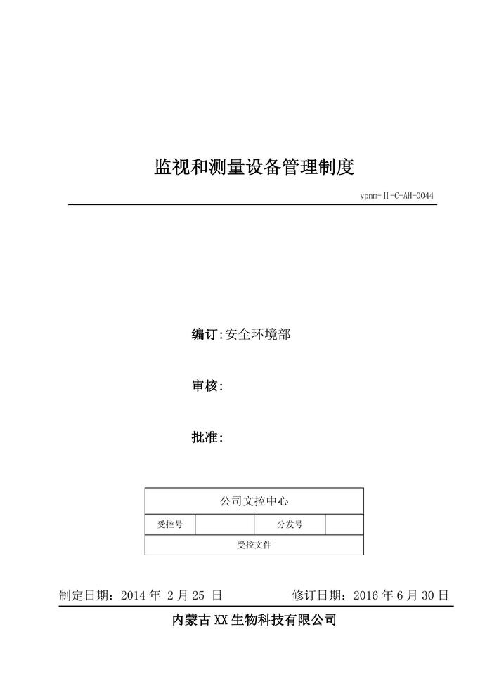 44、監(jiān)測和測量設(shè)備管理制度doc