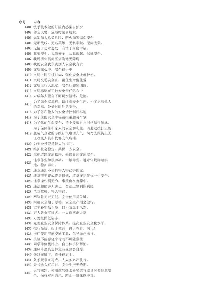 【安全標語口號】1401-1600xlsx