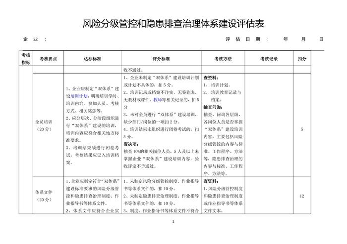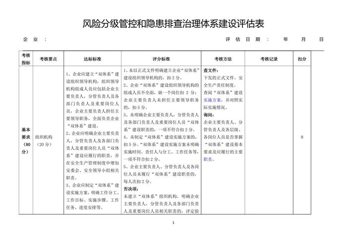 雙重預(yù)防體系建設(shè)達標評估表doc
