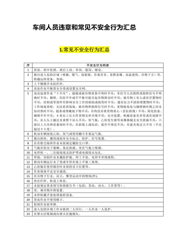 車間常見不安全行為匯總docx