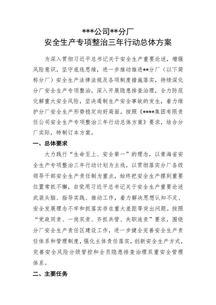 企業(yè)安全生產專項整治三年行動總體方案(1)docx