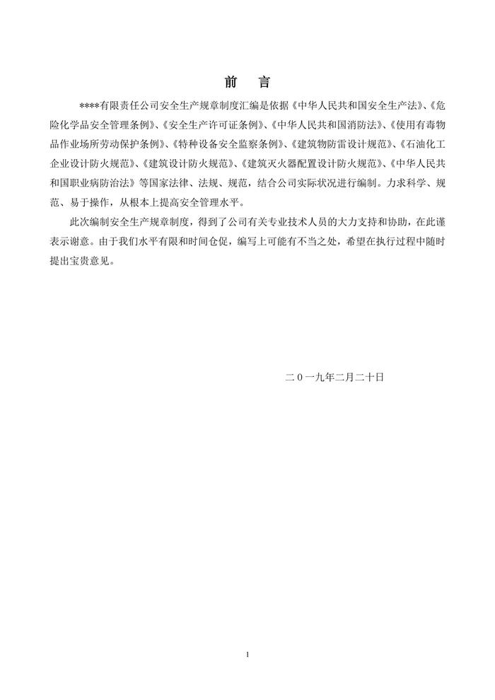 化工企業(yè)安全生產(chǎn)規(guī)章制度匯編docx