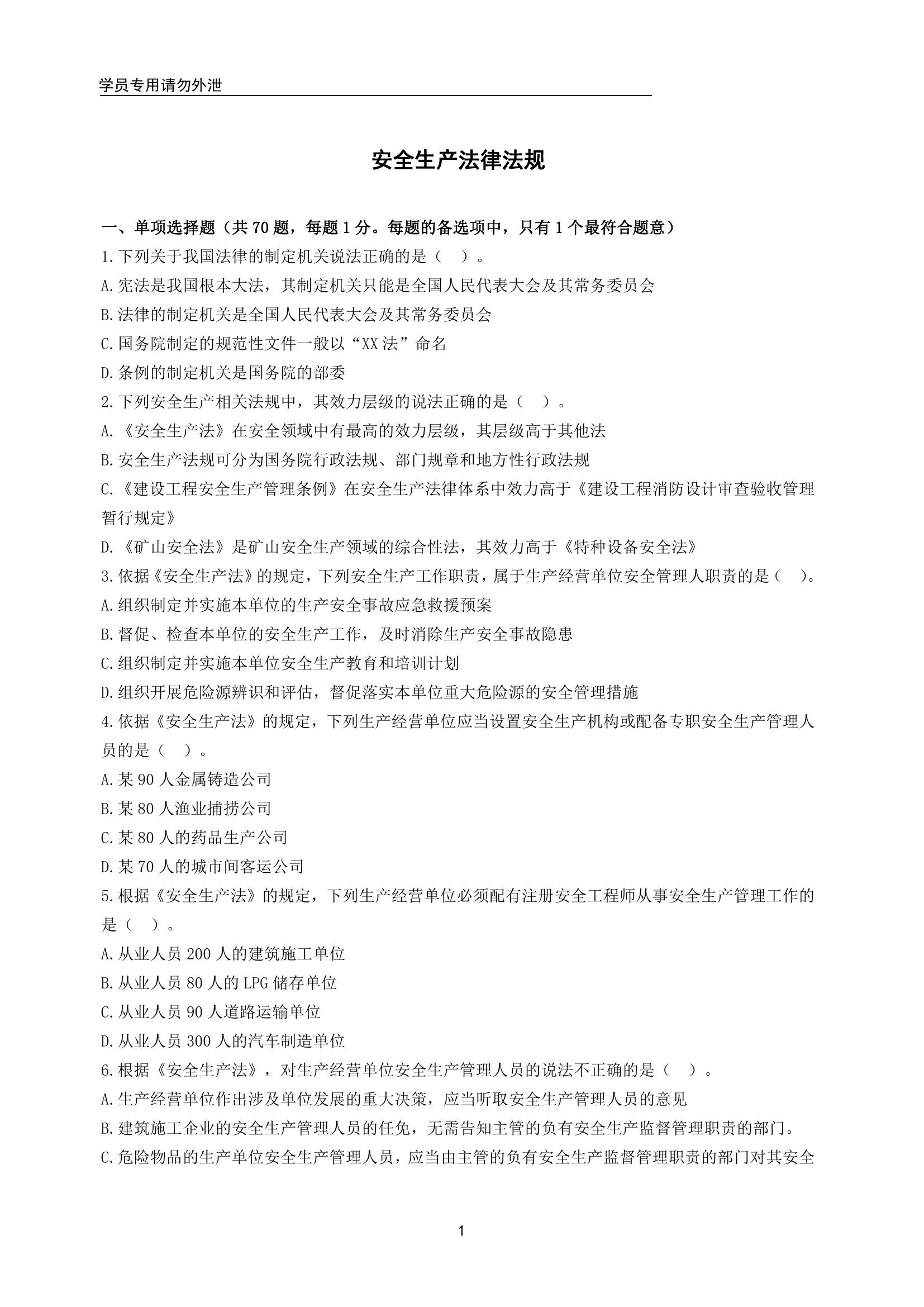 2022中級注安臨考沖刺模擬卷:法規(guī)一pdf
