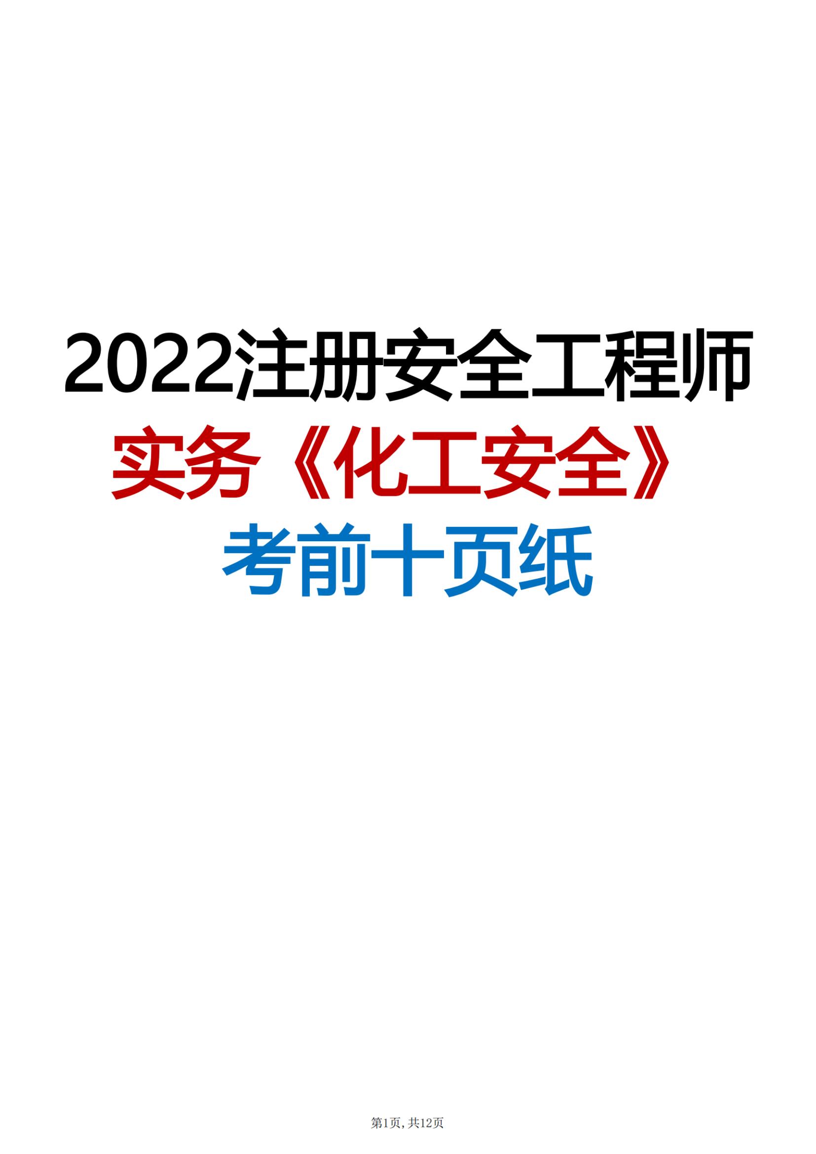 2022年注安實(shí)務(wù)《化工安全》考前十頁(yè)紙pdf