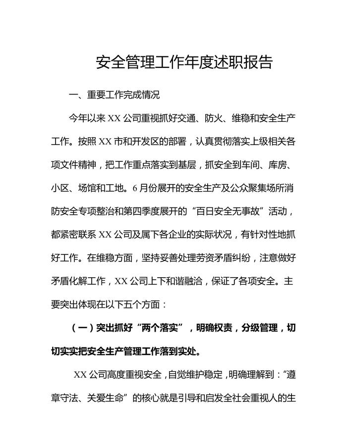 2022安全管理工作年終述職報(bào)告(12頁(yè))docx