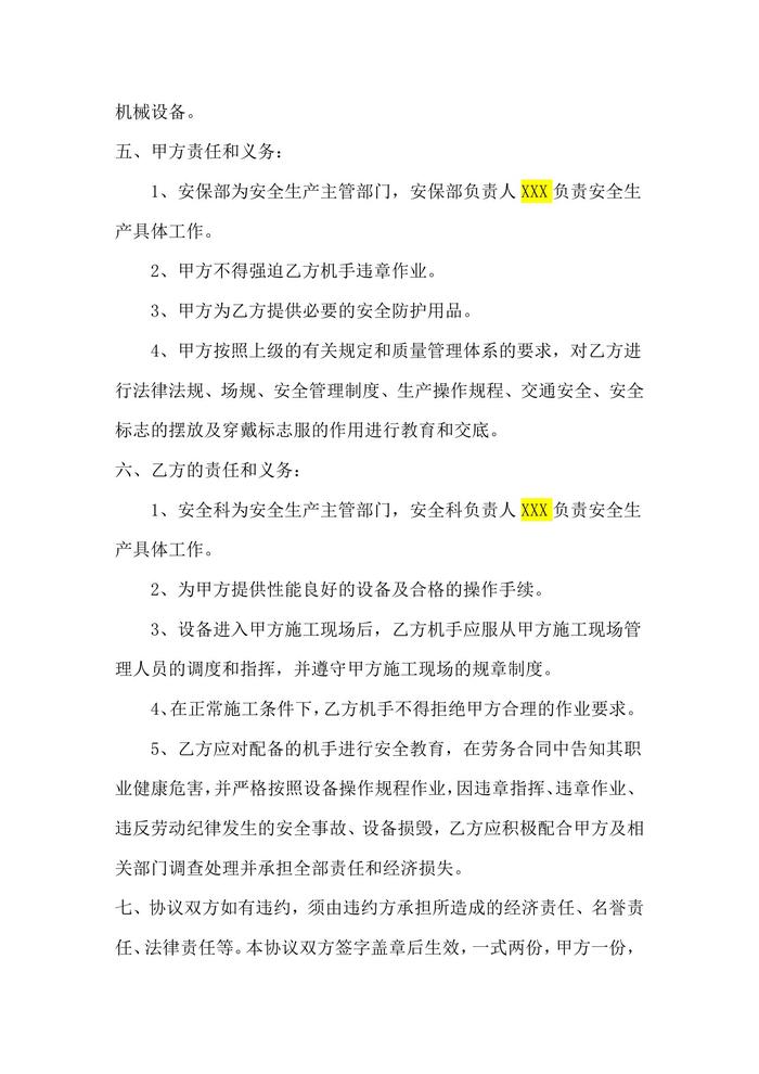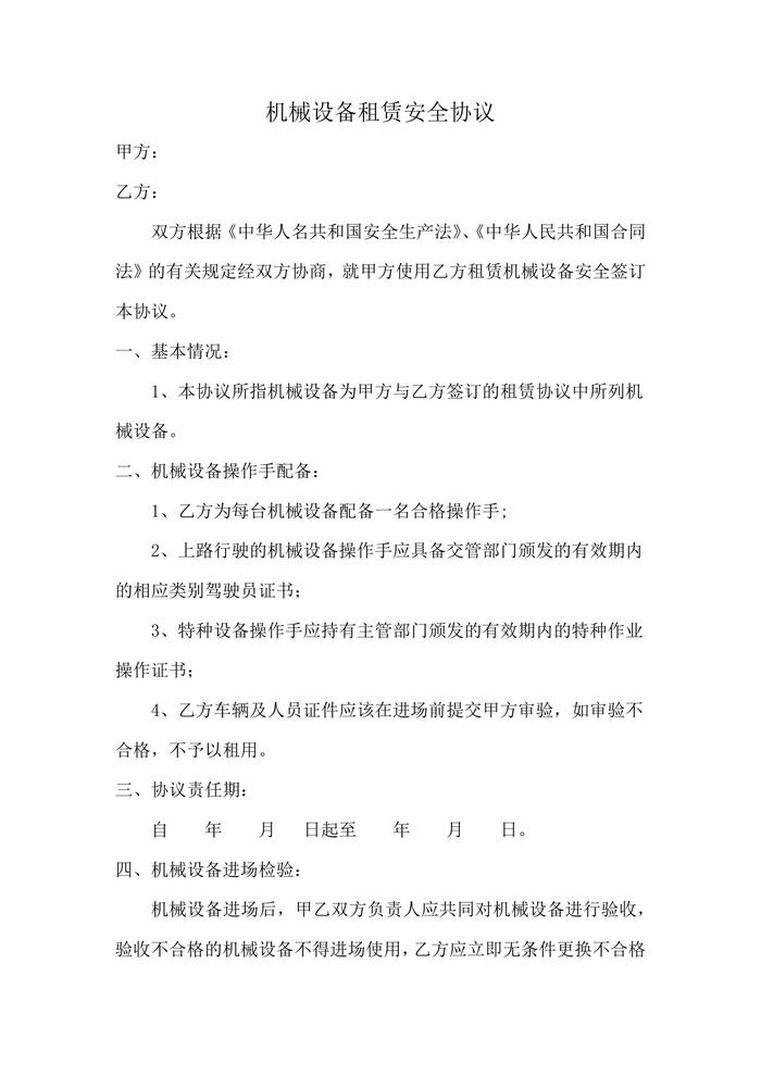 機(jī)械設(shè)備租賃安全協(xié)議docx