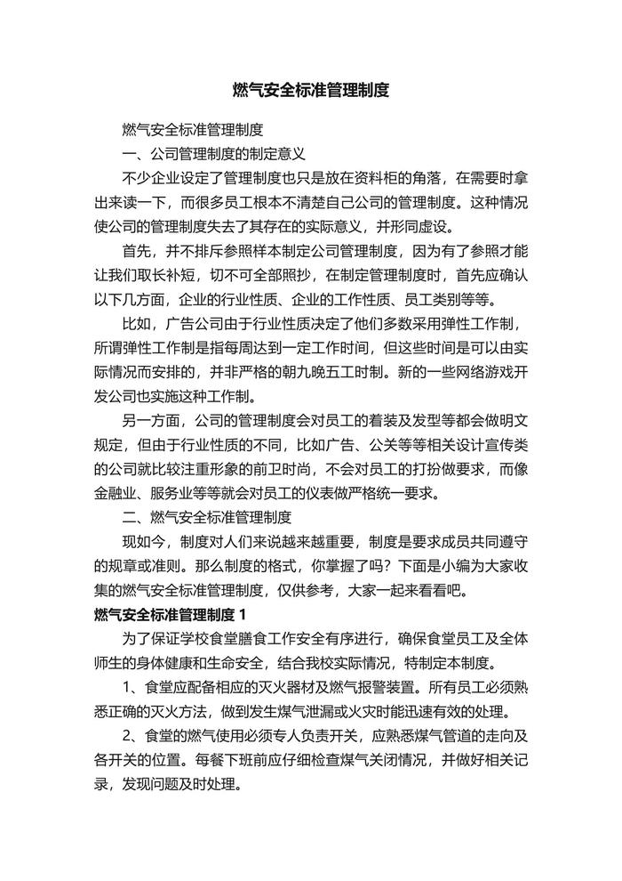 燃?xì)獍踩珮?biāo)準(zhǔn)管理制度docx