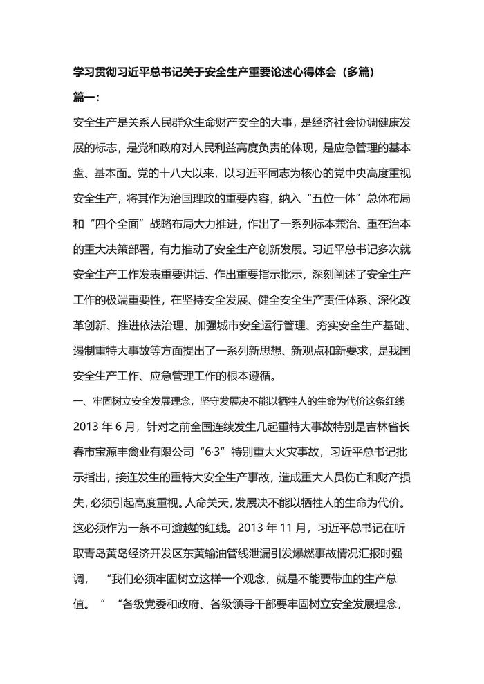 學(xué)習(xí)貫徹習(xí)近平總書記關(guān)于安全生產(chǎn)重要論述心得體會docx