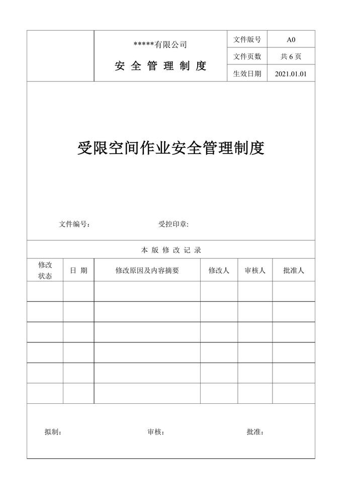 受限空間作業(yè)分級(jí)安全管理制度doc