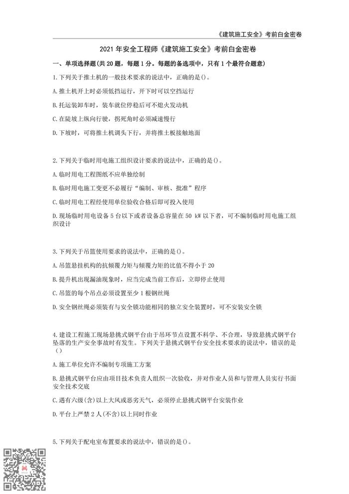 注冊安全工程師《建筑施工安全》白金密卷pdf