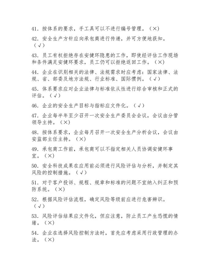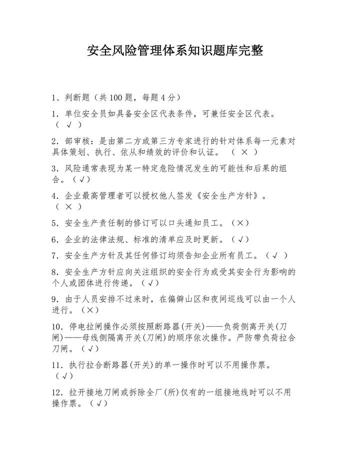 ~安全風(fēng)險(xiǎn)管理體系知識(shí)題庫完整(45頁)docx