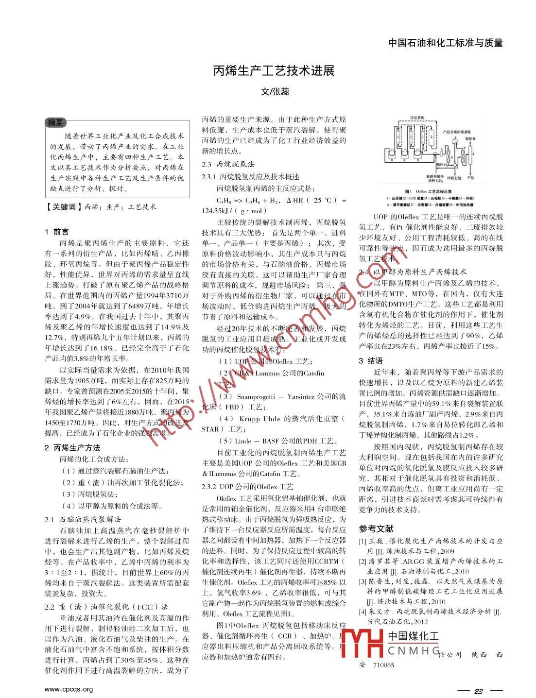 丙烯生產(chǎn)工藝技術(shù)進(jìn)展