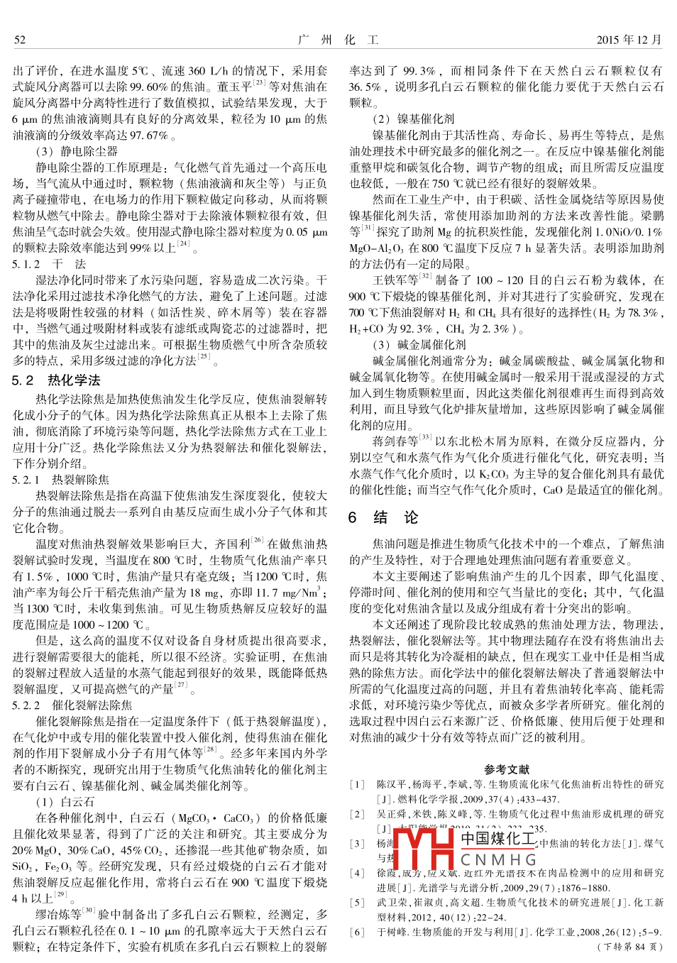 生物質(zhì)氣化中焦油特性及其處理