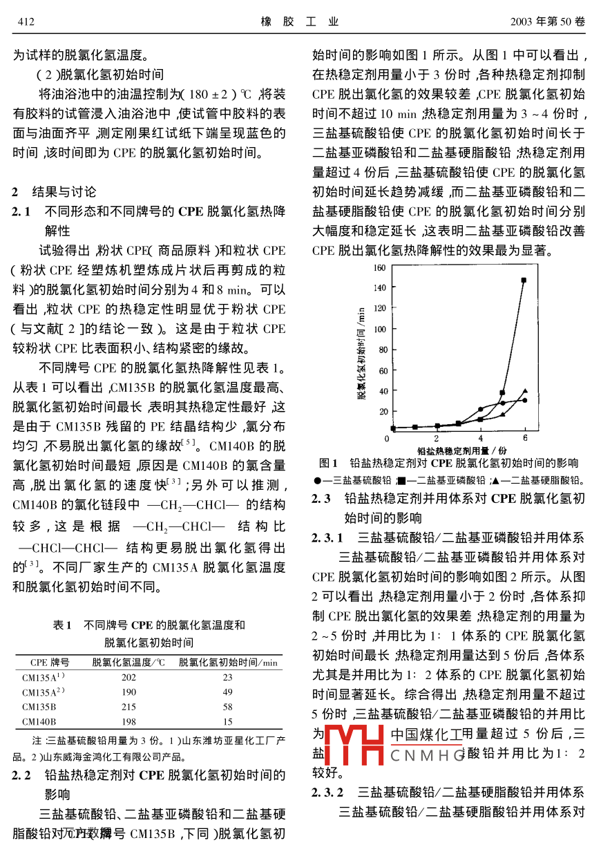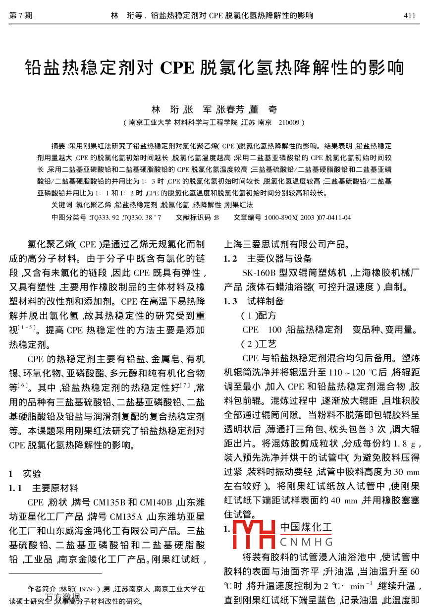 鉛鹽熱穩(wěn)定劑對(duì)CPE脫氯化氫熱降解性的影響