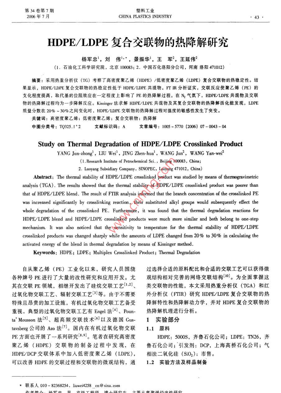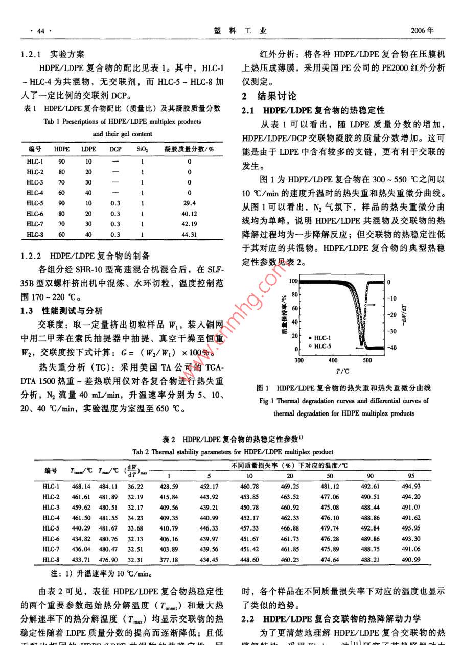 HDPE/LDPE復(fù)合交聯(lián)物的熱降解研究