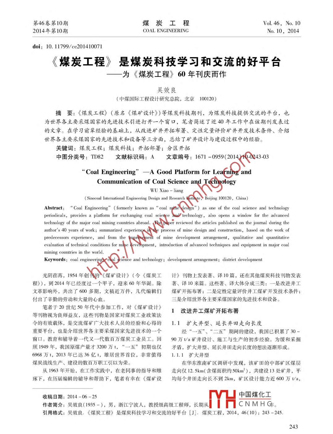 《煤炭工程》是煤炭科技學(xué)習(xí)和交流的好平臺——為《煤炭工程》60年刊慶而作