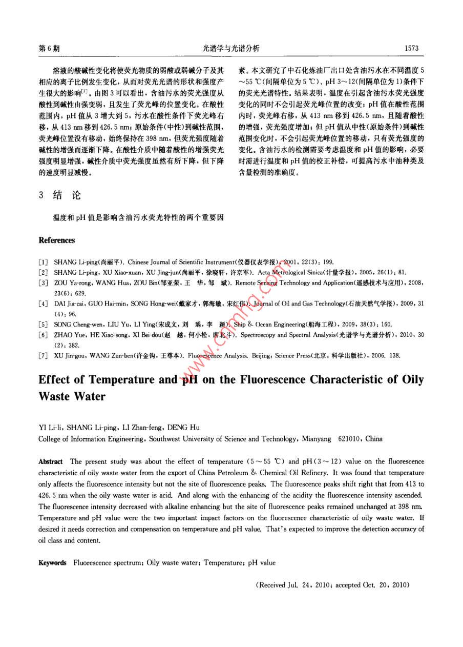 溫度、pH對含油污水熒光特性的影響 溫度、pH對含油污水熒光特性的影響