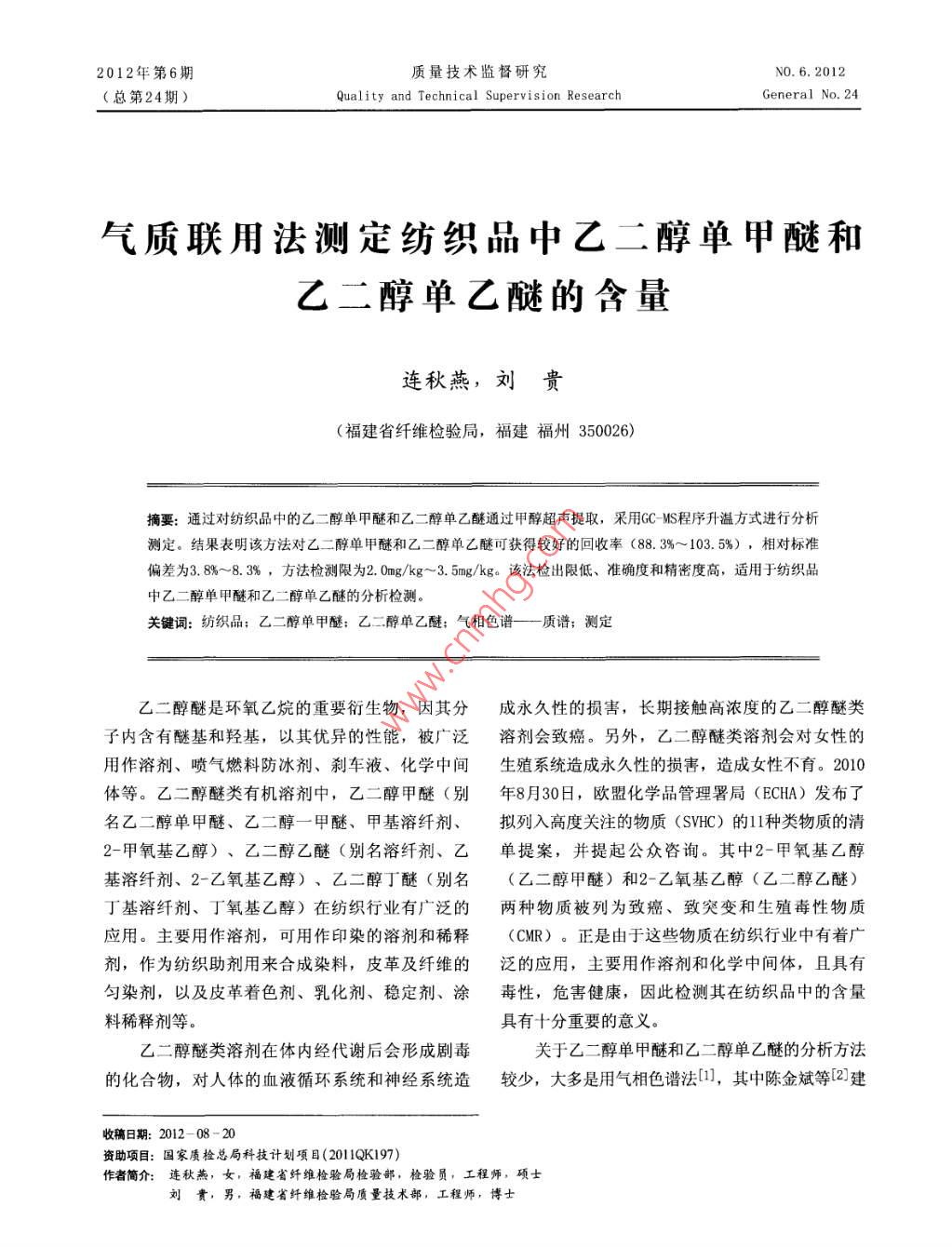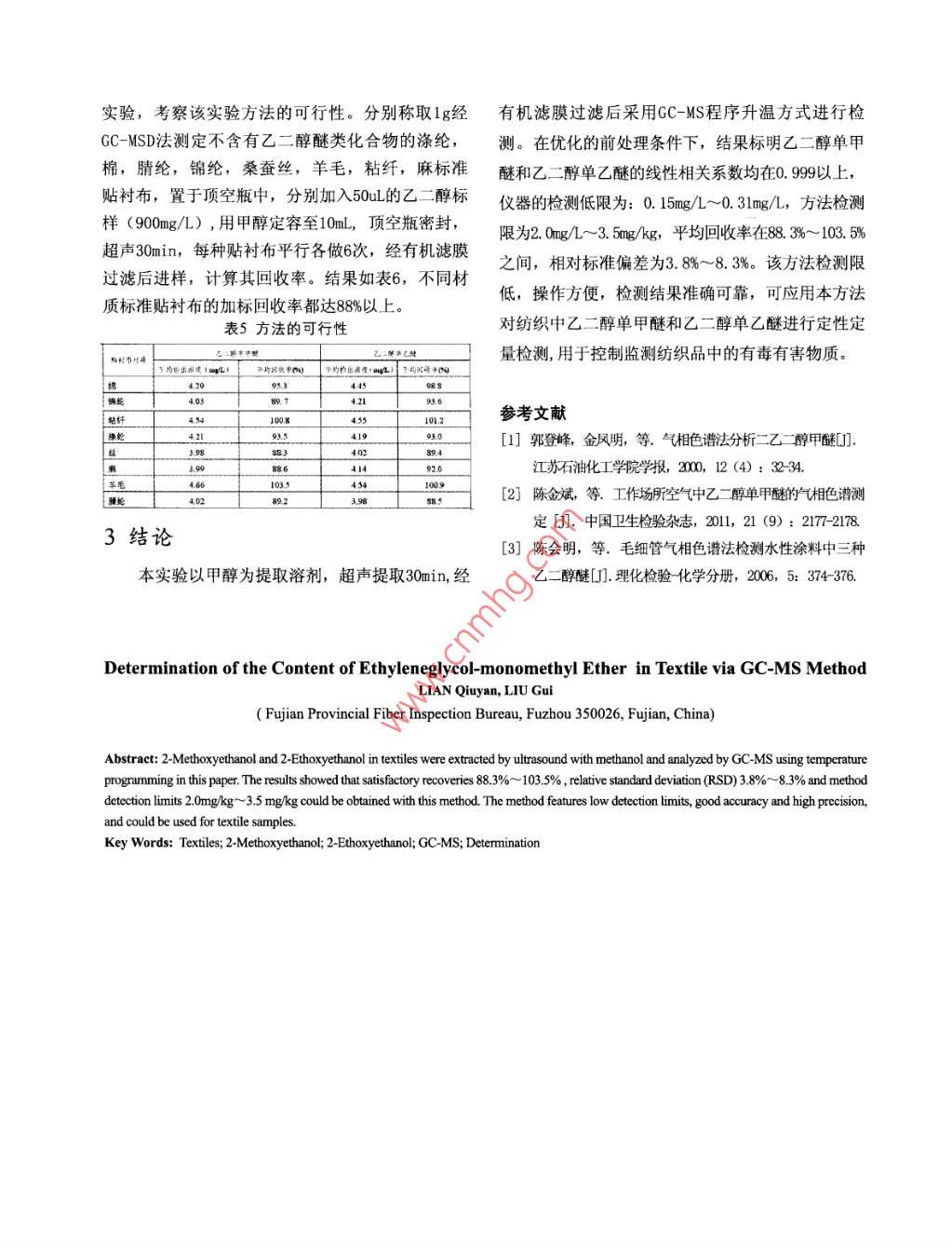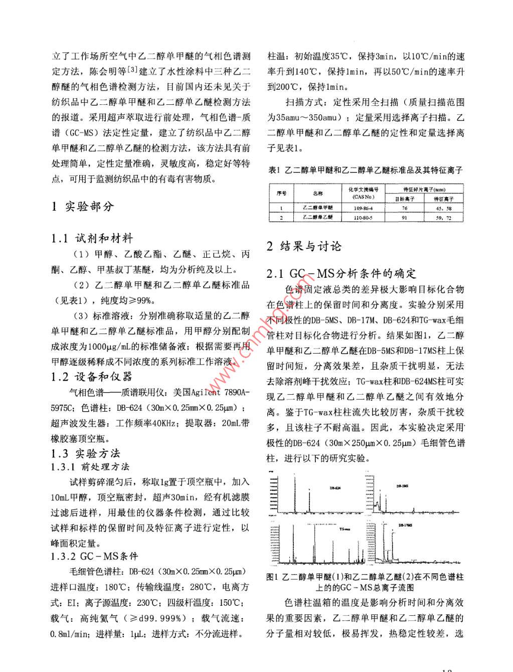 氣質(zhì)聯(lián)用法測定紡織品中乙二醇單甲醚和乙二醇單乙醚的含量