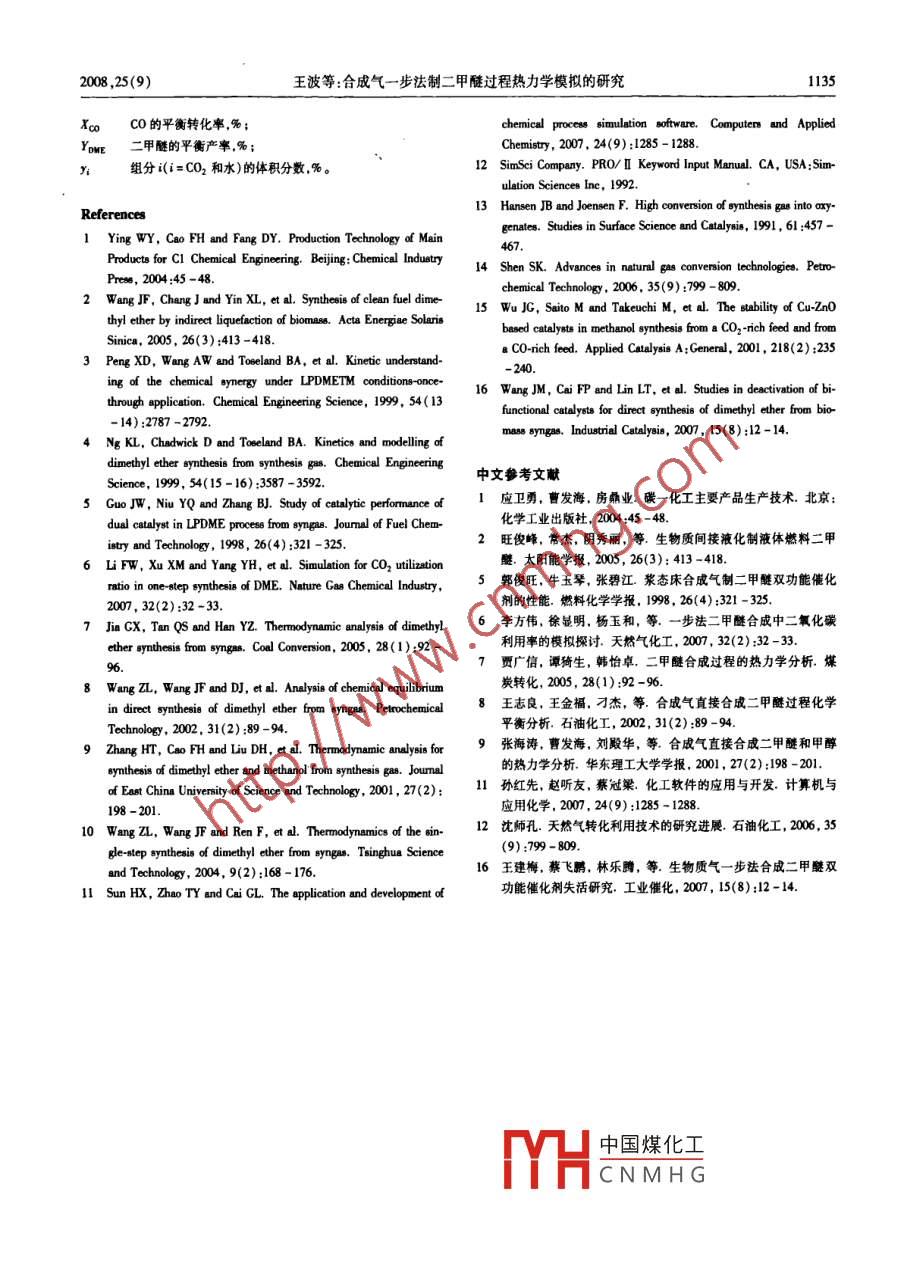 合成氣一步法制二甲醚過(guò)程熱力學(xué)模擬的研究