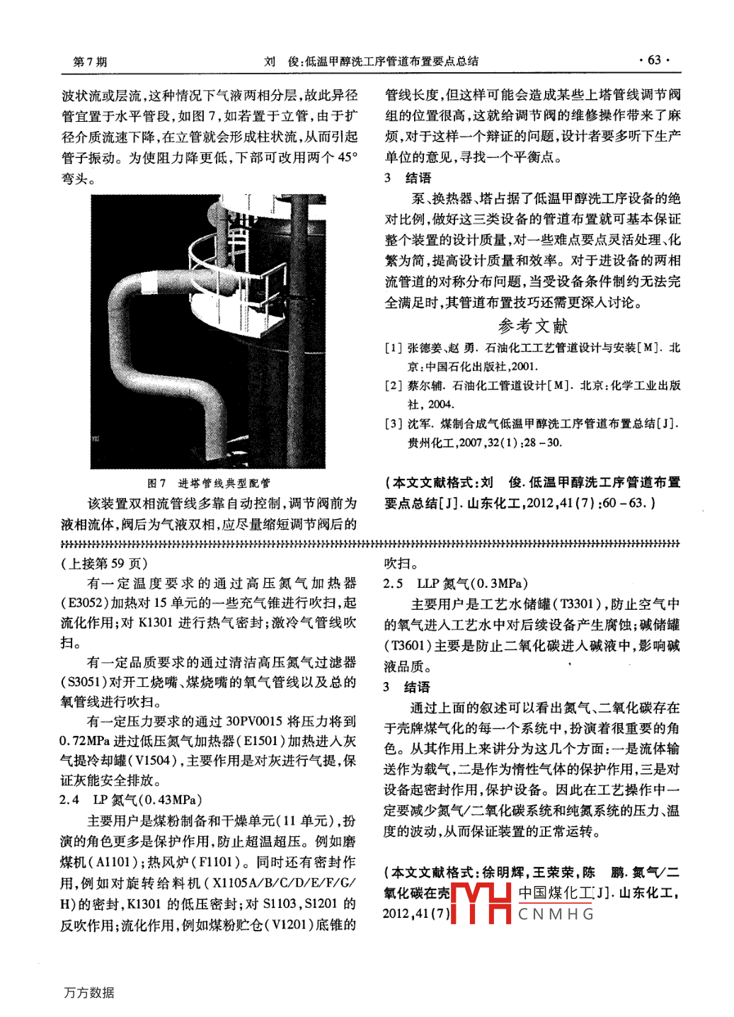 低溫甲醇洗工序管道布置要點總結