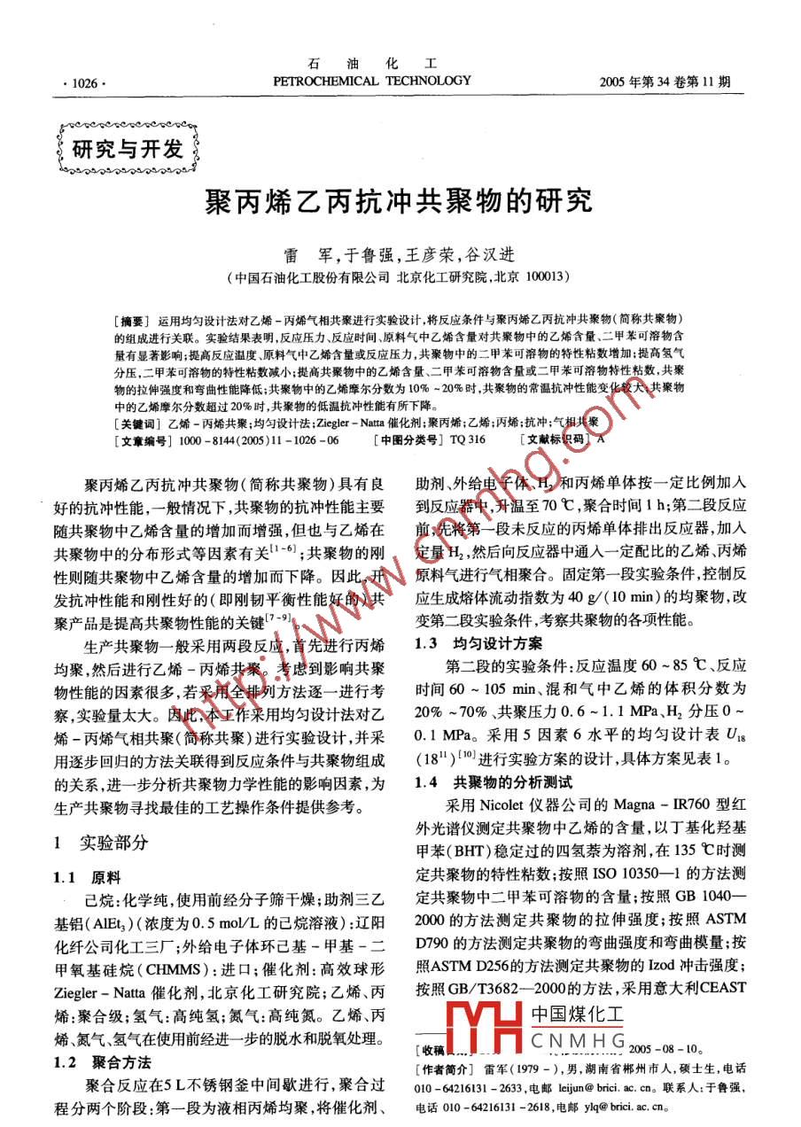 聚丙烯乙丙抗沖共聚物的研究