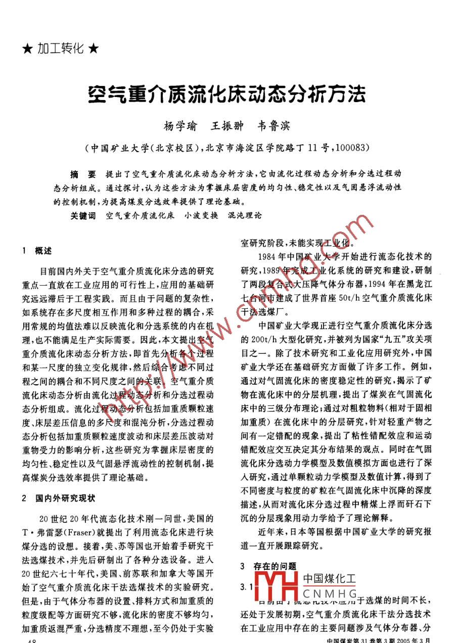 空氣重介質(zhì)流化床動態(tài)分析方法