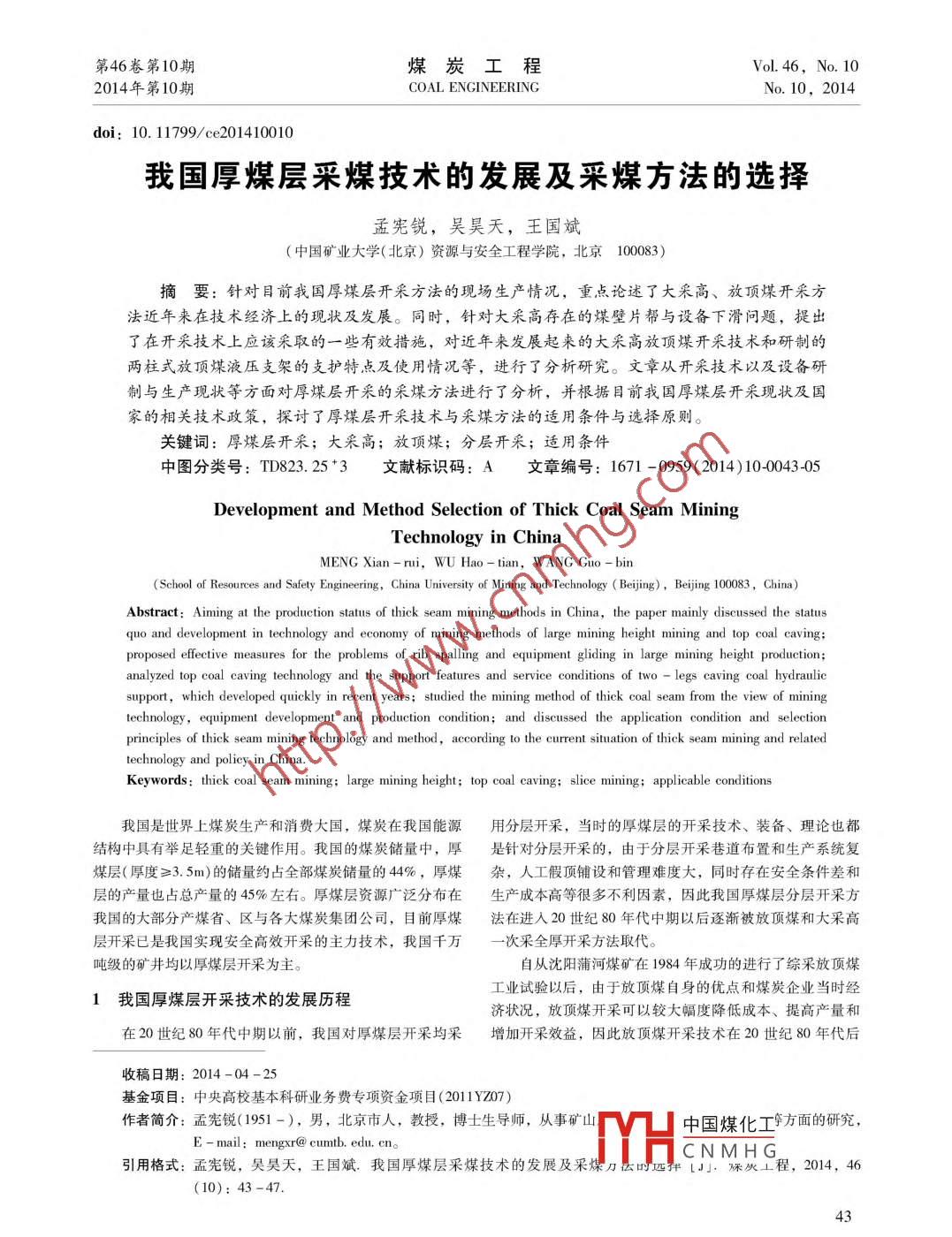 - 期刊名字:煤炭工程