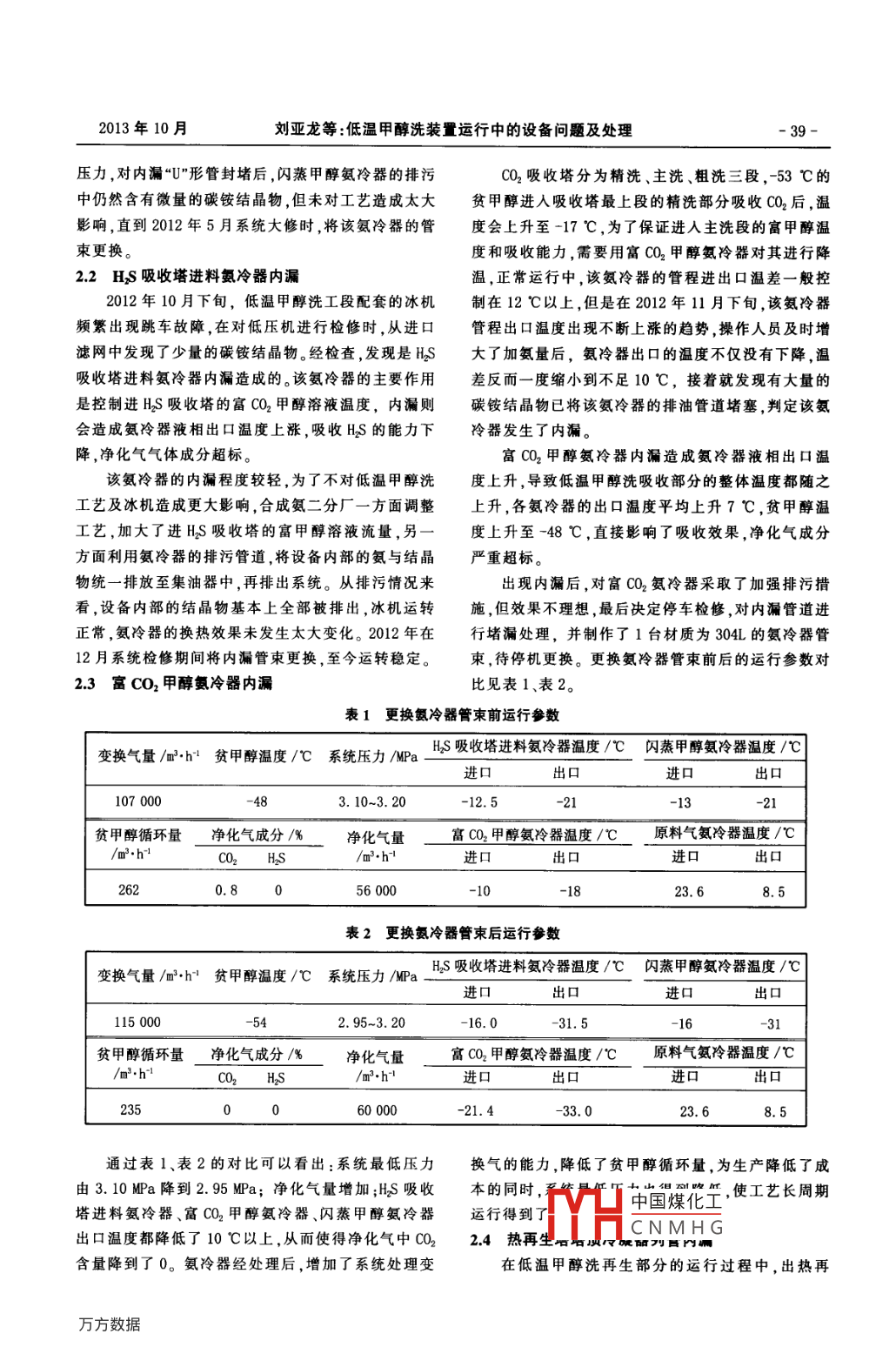低溫甲醇洗裝置運(yùn)行中的設(shè)備問(wèn)題及處理