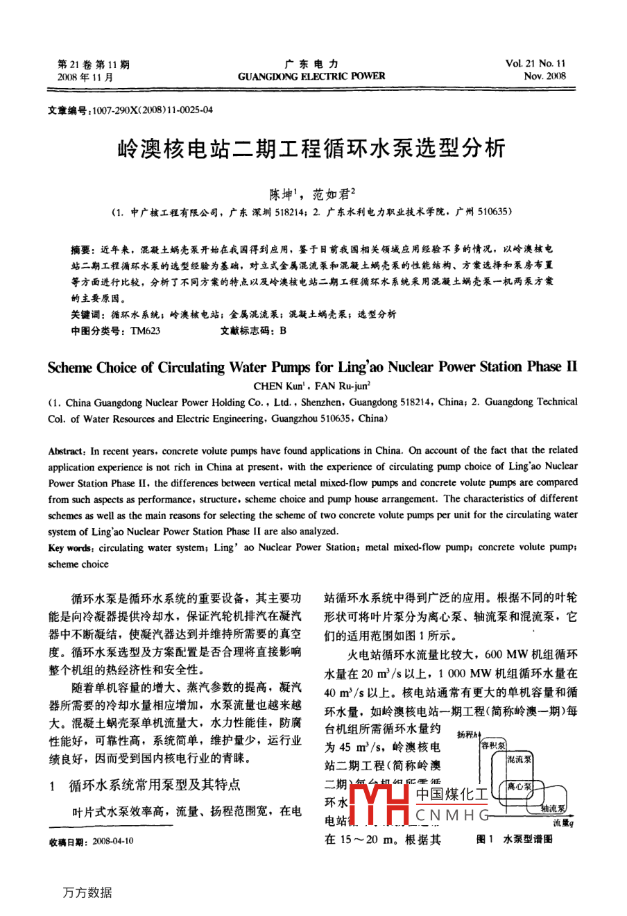 嶺澳核電站二期工程循環(huán)水泵選型分析