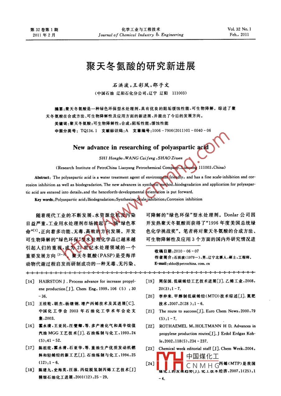 - 期刊名字:化學(xué)工業(yè)與工程技術(shù)