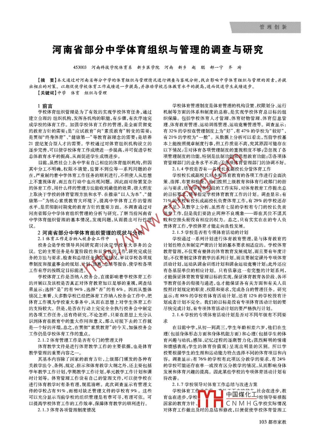 河南省部分中學(xué)體育組織與管理的調(diào)查與研究