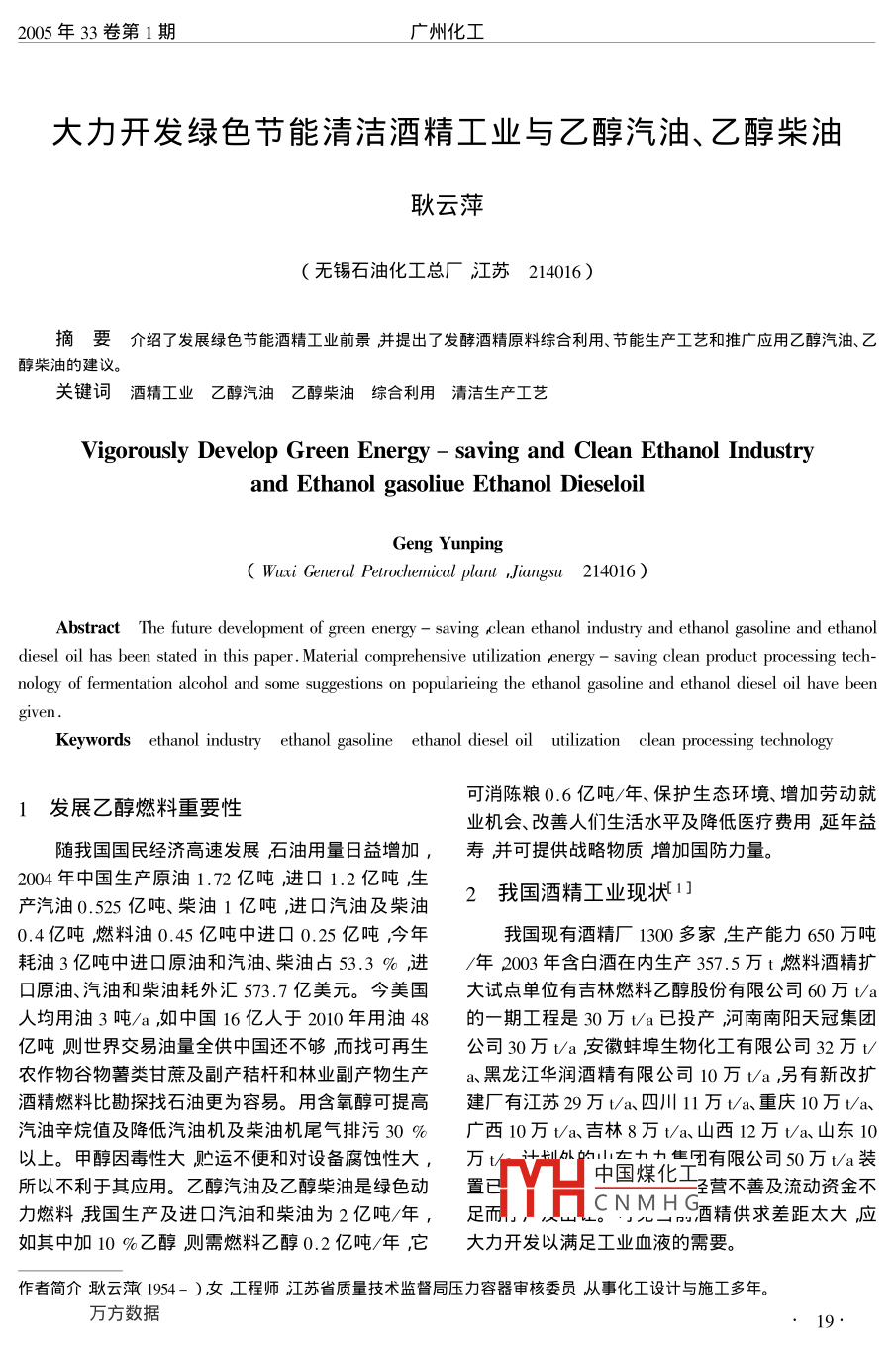 大力開發(fā)綠色節(jié)能清潔酒精工業(yè)與乙醇汽油、乙醇柴油