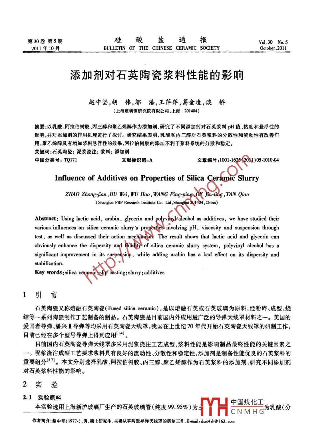- 期刊名字:硅酸鹽通報(bào)