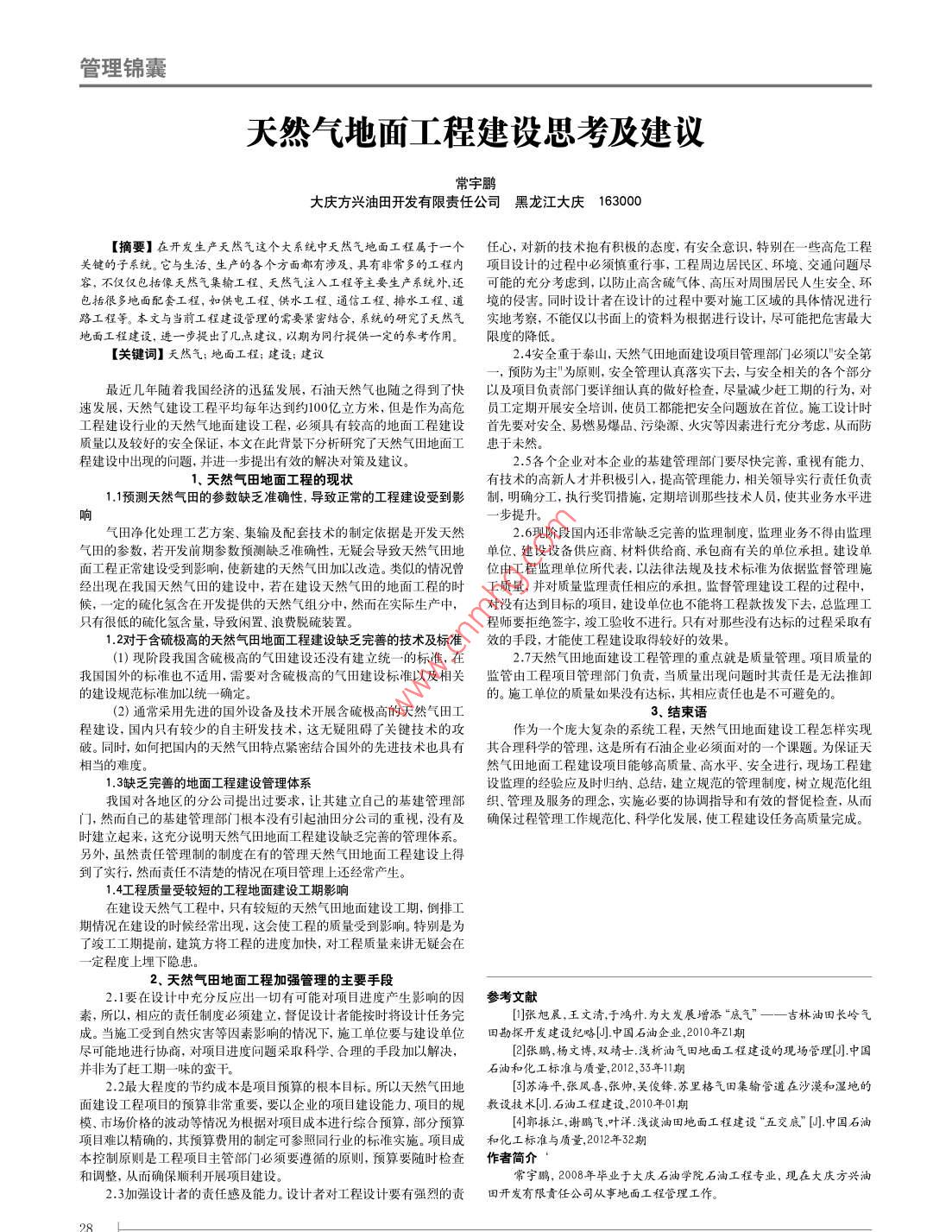 天然氣地面工程建設(shè)思考及建議