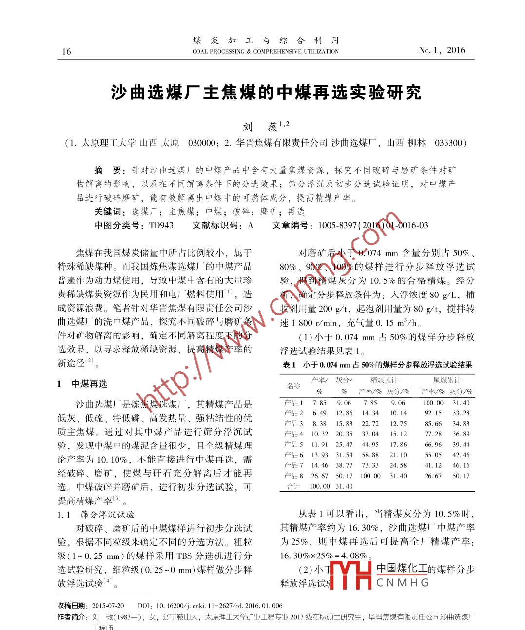 - 期刊名字:煤炭加工與綜合利用