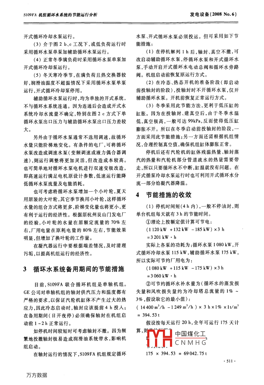 S109FA機組循環(huán)水系統(tǒng)的節(jié)能運行分析