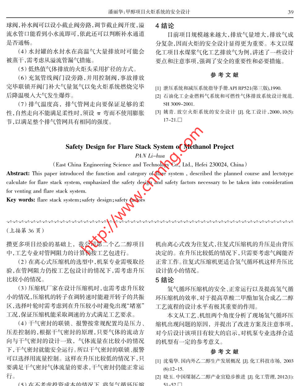 甲醇項(xiàng)目火炬系統(tǒng)的安全設(shè)計(jì)