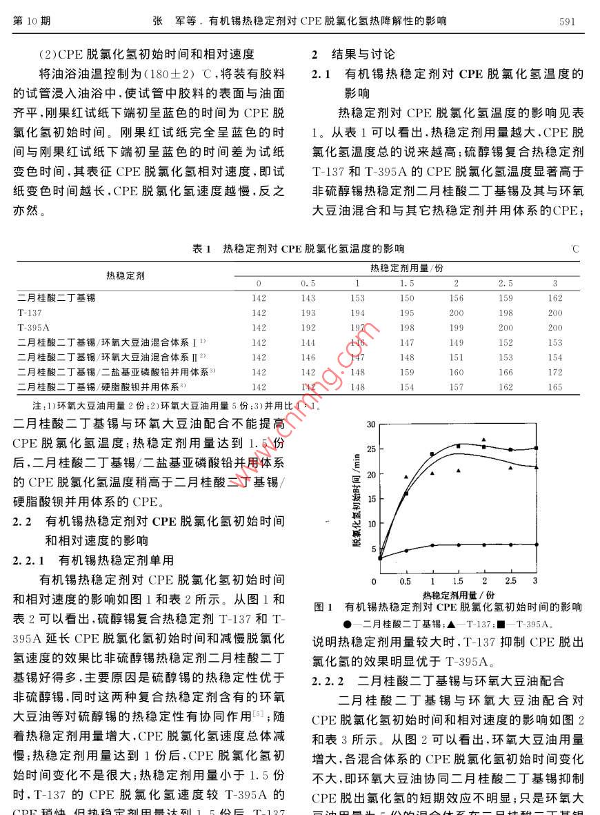 有機(jī)錫熱穩(wěn)定劑對(duì)CPE脫氯化氫熱降解性的影響