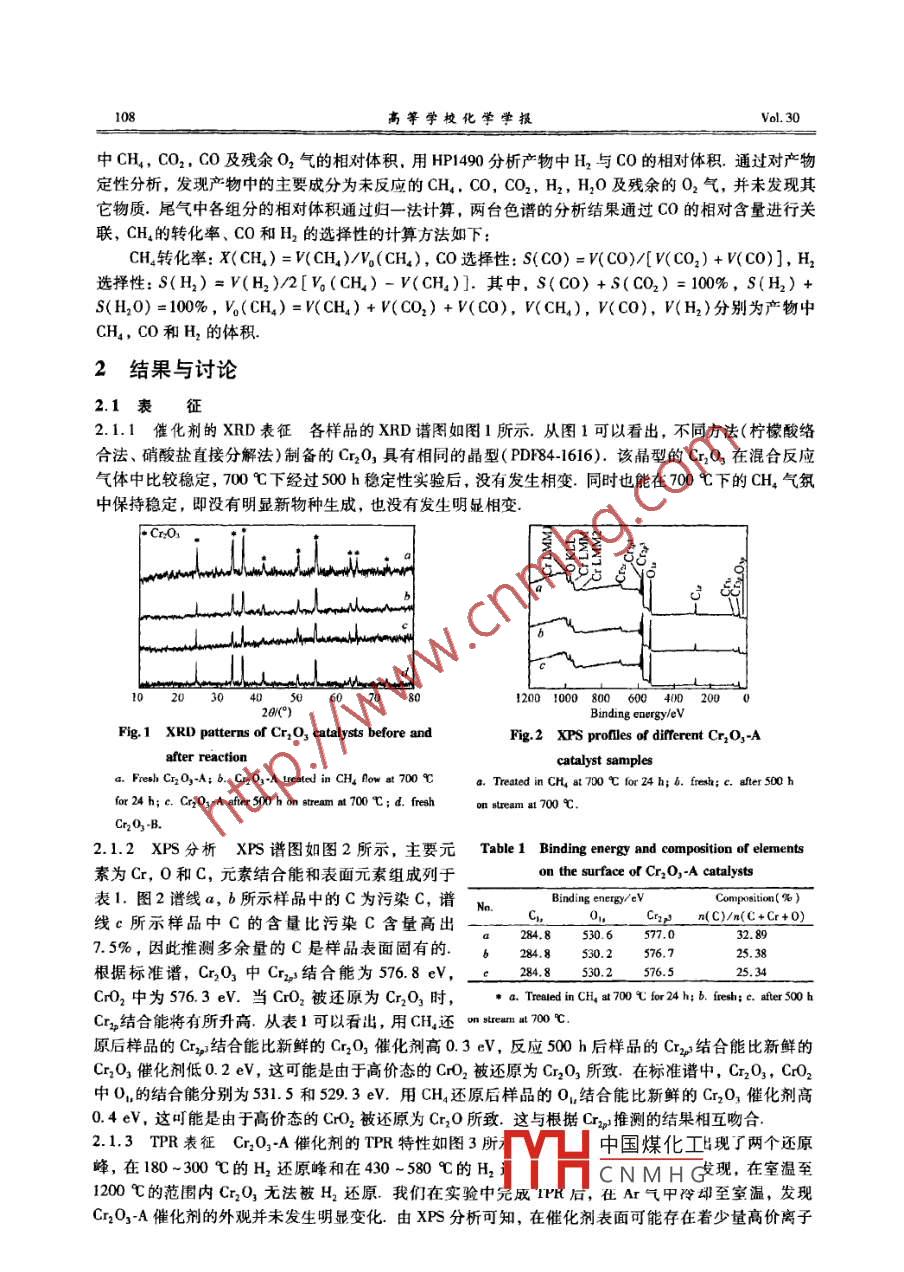 Cr2O3催化劑上甲烷部分氧化制備合成氣