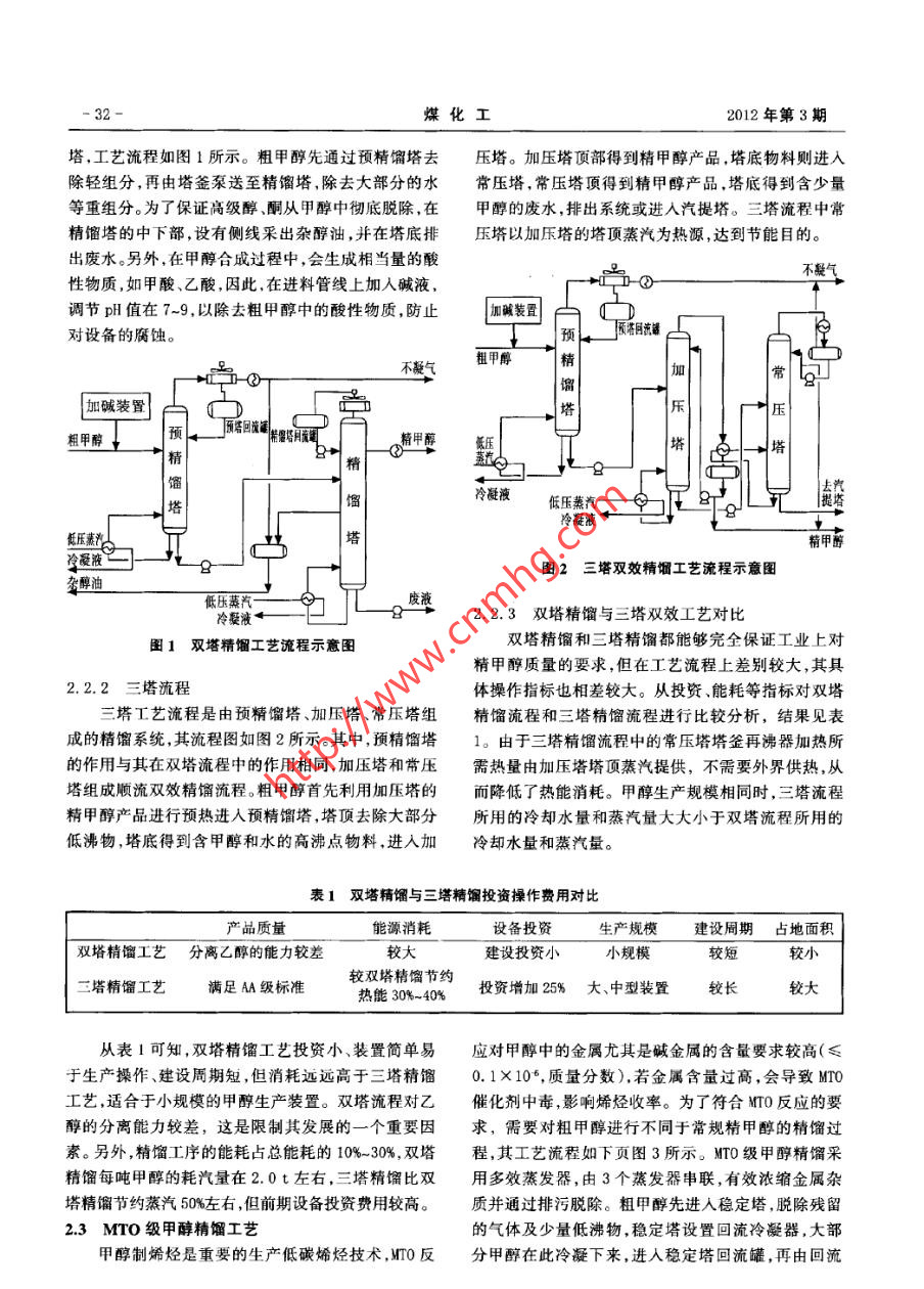 精甲醇及MTO級甲醇精餾工藝技術(shù)進(jìn)展