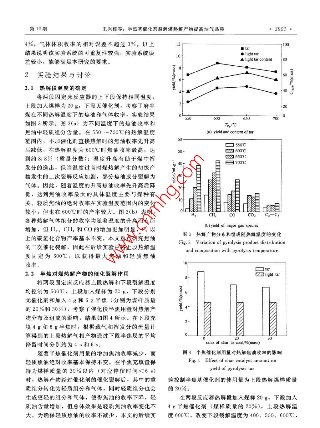 半焦基催化劑裂解煤熱解產(chǎn)物提高油氣品質(zhì)