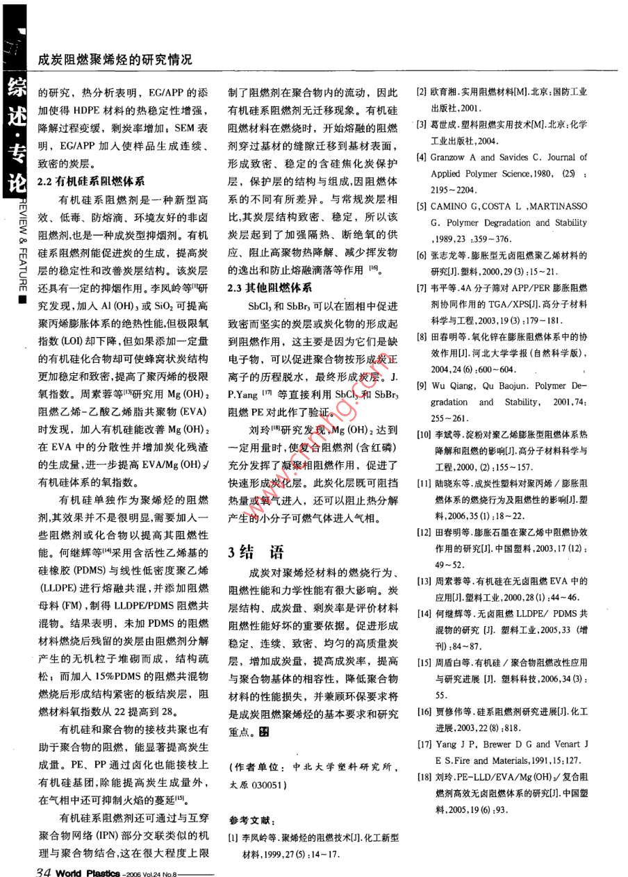 成炭阻燃聚烯烴的研究情況
