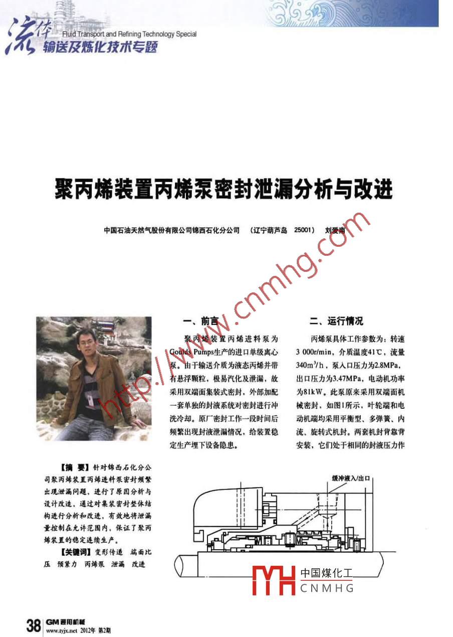 聚丙烯裝置丙烯泵密封泄漏分析與改進