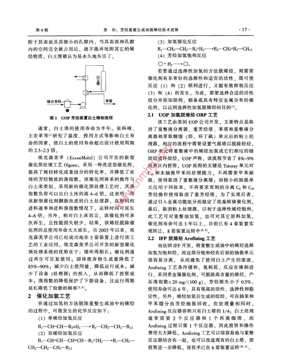 芳烴重整生成油脫烯烴技術(shù)進(jìn)展