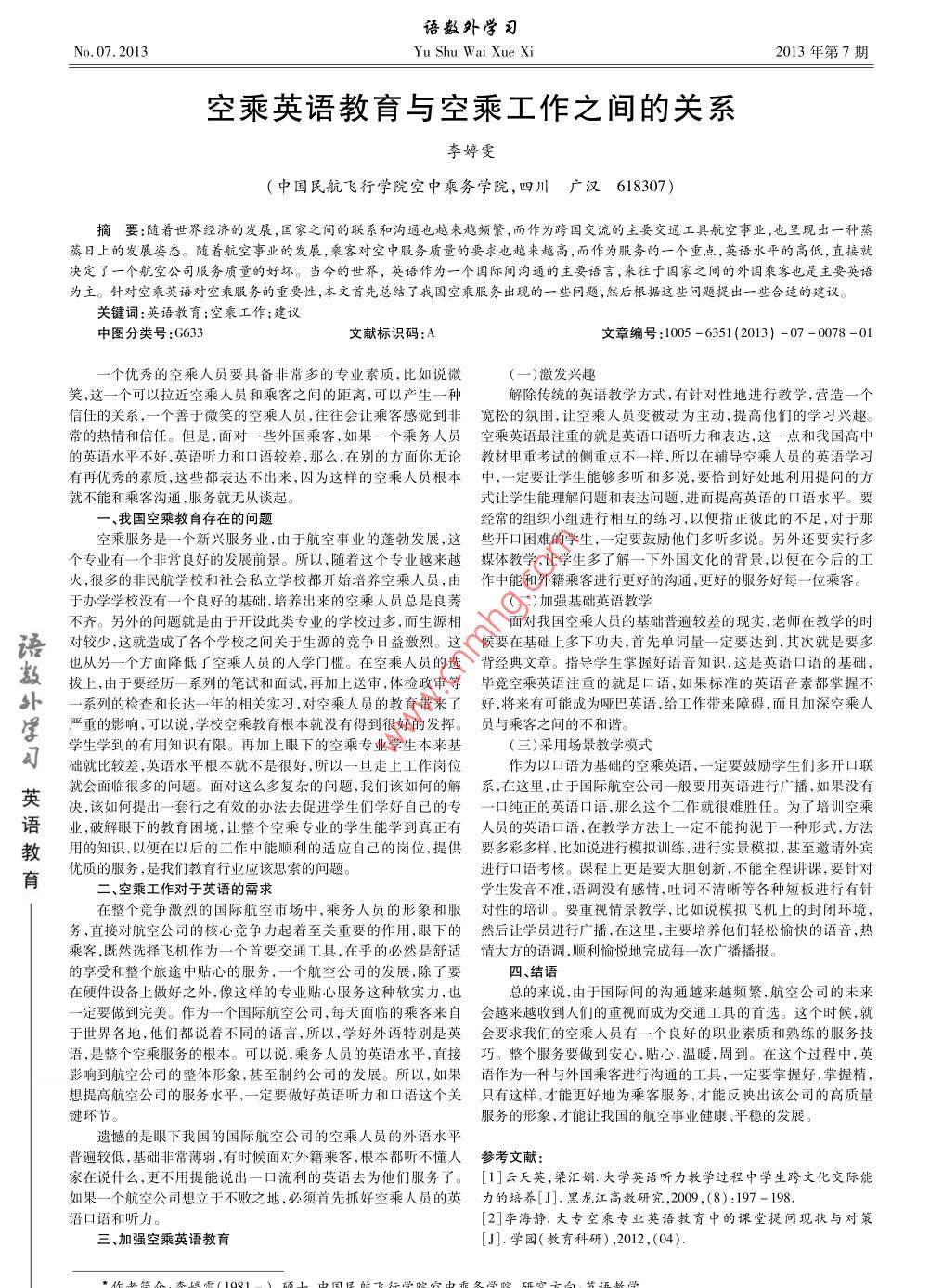 - 作者單位:中國(guó)民航飛行學(xué)院空中乘務(wù)學(xué)院