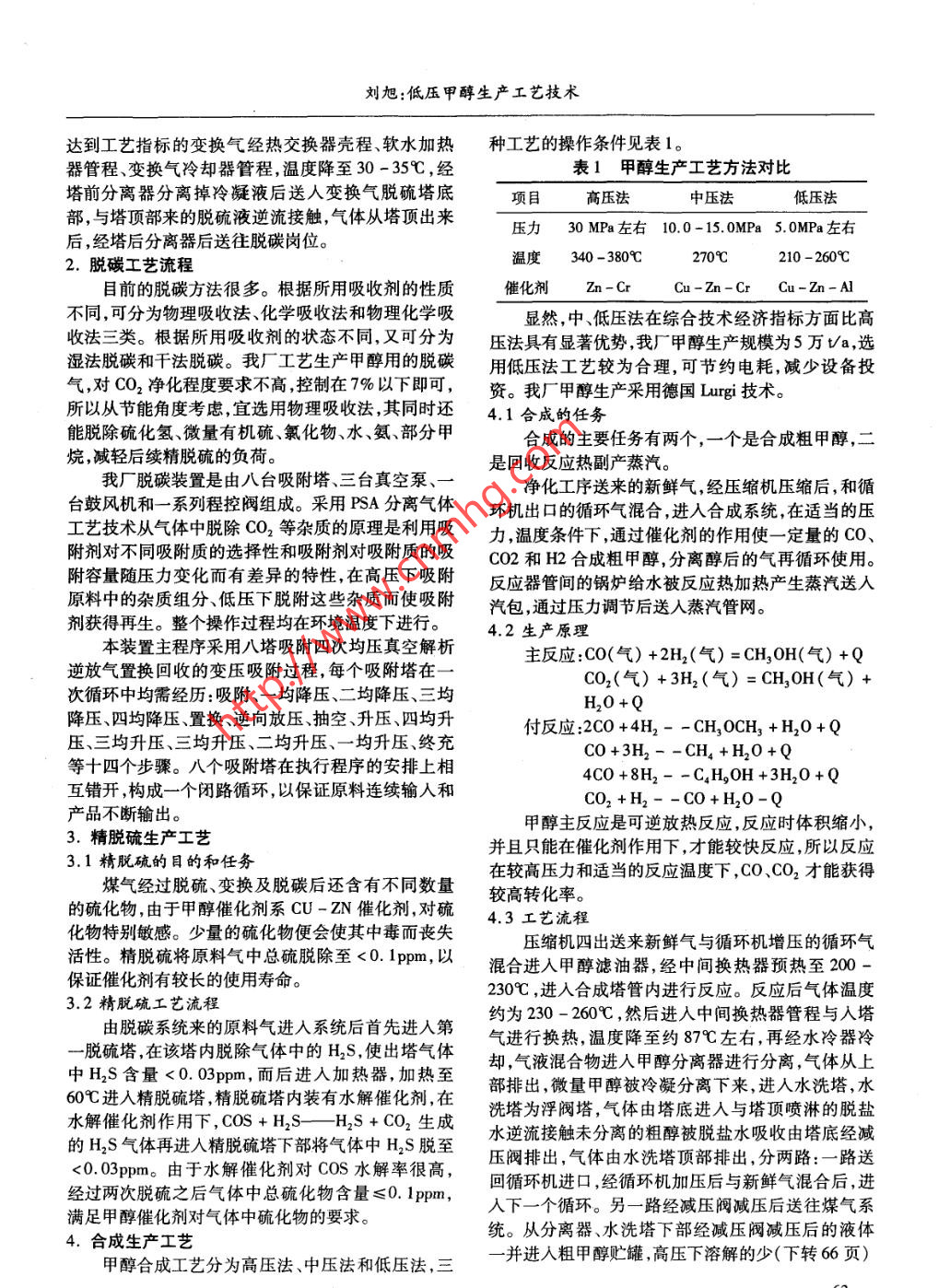 低壓甲醇生產(chǎn)工藝技術(shù)