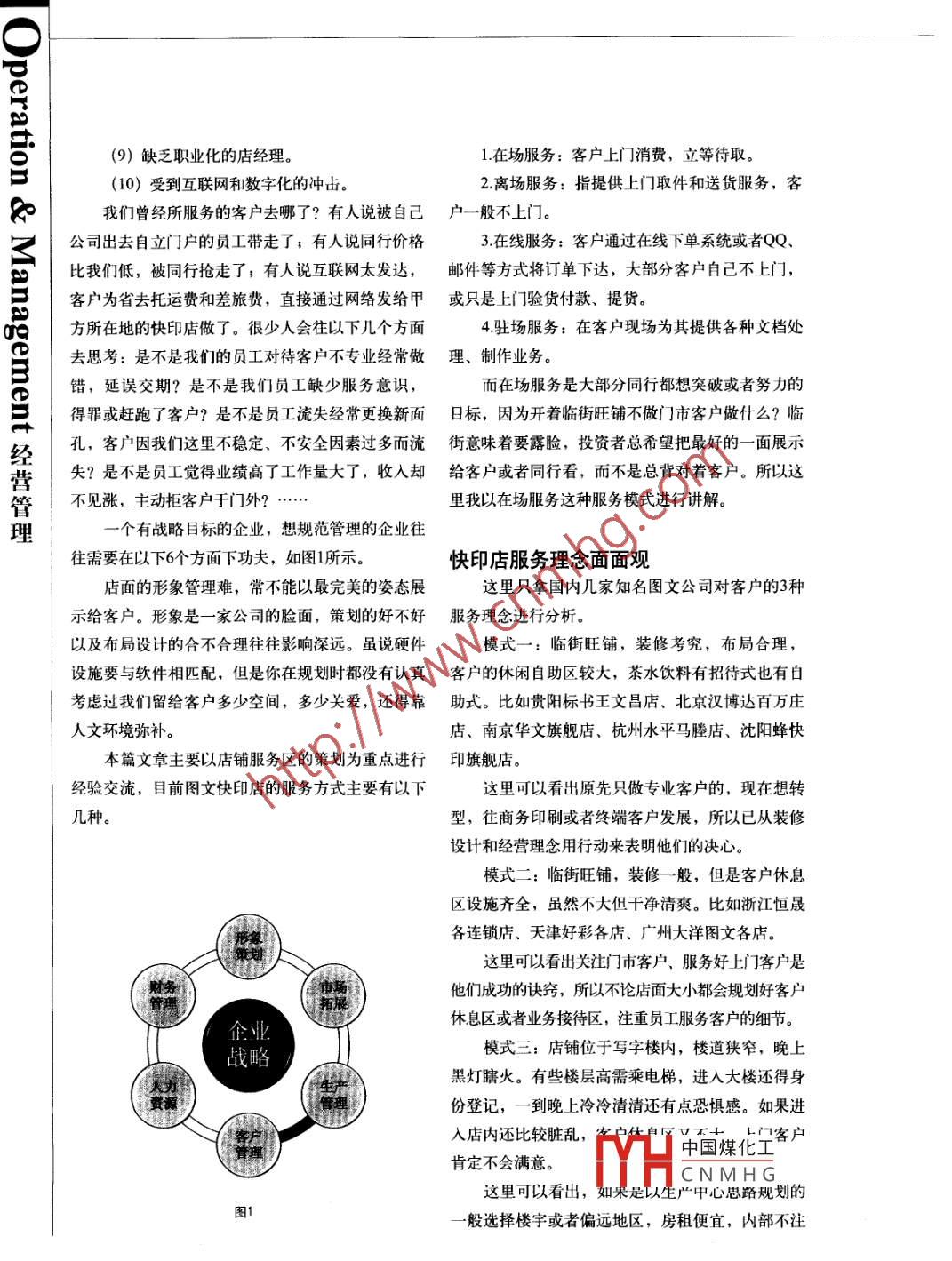 ((9)缺乏職業(yè)化的店經(jīng)理。1.在場服務:客戶上門]消費,立等待取。.(10)受到互聯(lián)網(wǎng)和數(shù)字化的沖擊。2.離場服務:指提供上門取件和送貨服務,客我們曾經(jīng)所服務的客戶去哪了?有人說被自己戶-般不上門。公司出去自立]戶的員工帶走了;有人說同行價格3.在線服務:客戶通過在線下單系統(tǒng)或者QQ.比我們低,被同行搶走了,有人說互聯(lián)網(wǎng)太發(fā)達,郵件等方式將訂單下達,大部分客戶自己不上門,客戶為省去托運費和差旅費,直接通過網(wǎng)絡發(fā)給甲或只是 上門驗貨付款、提貨。方所在地的快印店做了。很少人會往以下幾個方面4.駐場服務:在客戶現(xiàn)場為其提供各種文檔處去思考:是不是我們的員工對待客戶不專業(yè)經(jīng)常做理、制作業(yè)務。錯,延誤交期?是不是我們員工缺少服務意識,而在場服務是大部分同行都想突破或者努力的得罪或趕跑了客戶?是不是員工流失經(jīng)常更換新面目標,因為開著臨街旺鋪不做門市客戶做什么?臨經(jīng)孔,客戶因我們這里不穩(wěn)定、不安全因素過多而流街意味著要露臉,投資者總希望把最好的一-面展示失?是不是員工覺得業(yè)績高了工作量大了,收入?yún)s給客戶或者同行看,而不是總背對著客戶。所以這管不見漲,主動拒客戶于門外? ....里我以在場服務這種服務模式進行講解。理一個有戰(zhàn)略目標的企業(yè),想規(guī)范管理的企業(yè)往往需要在以下6個方面下功夫,如圖1所示??煊〉攴绽砟蠲婷嬗^店面的形象管理難,常不能以最完美的姿態(tài)展這里只拿國內幾家知名圖文公司對客戶的3種示給客戶。形象是一家公司的臉面,策劃的好不好服務理念進行分析。以及布局設計的合不合理往往影響深遠。雖說硬件模式一:臨街旺鋪,裝修考究,布局合理,設施要與軟件相匹配,但是你在規(guī)劃時都沒有認真客 戶的休閑自助區(qū)較大,茶水飲料有招待式也有自考慮過我們留給客戶多少空間,多少關愛,還得靠助式。比如貴陽標書王文昌店、北京漢博達百萬莊人文環(huán)境彌補。店、南京華文旗艦店、杭州水平馬塍店、沈陽蜂快本篇文章主要以店鋪服務區(qū)的策劃為重點進行印旗艦店。經(jīng)驗交流,目前圖文快印店的服務方式主要有以下這里可以看出原先只做專業(yè)客戶的,現(xiàn)在想轉幾種。型,往商務印刷或者終端客戶發(fā)展,所以已從裝修:設計和經(jīng)營理念用行動來表明他們的決心。模式二:臨街旺鋪,裝修-般,但是客戶休息區(qū)設施齊全,雖然不大但干凈清爽。比如浙江恒晟形象各連鎖店、天津好彩各店、廣州大洋圖文各店。這里可以看出關注門市客戶、服務好上]客戶是財務他們成功的訣竅,所以不論店面大小都會規(guī)劃好客戶管理休息區(qū)或者業(yè)務接待區(qū),注重員工服務客戶的細節(jié)。企業(yè)模式三:店鋪位于寫字樓內,樓道狹窄,晚上戰(zhàn)略黑燈瞎火。有些樓層高需乘電梯,進入大樓還得身生廣資源份登記,一到晚 上冷冷清清還有點恐懼感。如果進客戶入店內還比較臟亂,.中國煤化寶客戶首理肯定不會滿意。C.HCNMHG這里可以看出,如果是以生產中心思路規(guī)劃的圖1.般選擇樓宇或者偏遠地區(qū),房租便宜,內部不注52經(jīng)營管理Operation & Management重門市客戶或者零星客戶,客戶休息區(qū)基本沒有或者較小。但是會設立會客室或業(yè)務洽談室。展工作臺儲藏室機柜儲藏至客戶接待及休息區(qū)的設施選擇客戶休息區(qū)的設施一- 般有:自助整理或者分h廢紙桶I切臺,自助服務電腦1~3臺;客戶娛樂設施:電目機DC900視機、iPad或者游戲機若干;休憩設施:吧椅、靠' 打有命輸出區(qū)椅、沙發(fā)、茶兒、空調,暖氣;茶水供應,自助工機咖啡機,電話機等。主要以能滿足客戶休息、修開機D95090改、聯(lián)系、娛樂、擺放物品等功能。在客戶休息區(qū)擺上一些糖果或者植物、鮮花_ F圖更能凸顯這里的氛圍。對于短暫停留的客戶建議使用吧椅,占地面積小,客戶坐著不舒適,以提醒他們不能長時間0303凸占用接待區(qū)位置。私密區(qū)按特區(qū)數(shù)對于長時間停留的客戶建議放三座位靠椅,9999或圍繞圓桌坐的單靠椅,場地允許的情況下放布藝沙發(fā),不建議使用皮質沙發(fā)或造型復雜的實木家具。因為我們接待的客戶素質有高有低,有些休息區(qū)人會有腳直接擱在椅子上的不文明行為,所以家具可以選擇清爽一一點的,容易清潔的。布藝沙發(fā)要每季度清洗- -次, 以免客戶不愿意坐。電視機可以兩用,一則空閑時看電視節(jié)目,圖2二則在繁忙時用于訂單電子顯示屏,客戶可直接在上面看到自己的文件制作進度?;蛘邔⑸a區(qū)噪聲較大的設備用玻璃或墻體隔斷。對于大客戶或者重要客戶,我們可以在生產杭州全印圖文的整體布局如圖2所示。采用了區(qū)以外的空間設立客戶洽談室,這里可以擺放沙字型坐式柜臺,生產區(qū)內部全敞開式,客戶在休發(fā)、實木家具以及工作臺,方便客戶在此封標或息區(qū)或接待區(qū)就可以一目了然地看到內部的生產情者為圖紙蓋章、簽字等。況,減少他的憂慮。有條件的還可以上一臺叫號機或者在場自助大多數(shù)同行比較贊同封閉式生產,所以生產區(qū)下單系統(tǒng),在遇到現(xiàn)場排隊較多、無人接單的情與服務接待區(qū)的連接主要靠服務臺來隔斷,目的是況,讓客戶自己下好訂