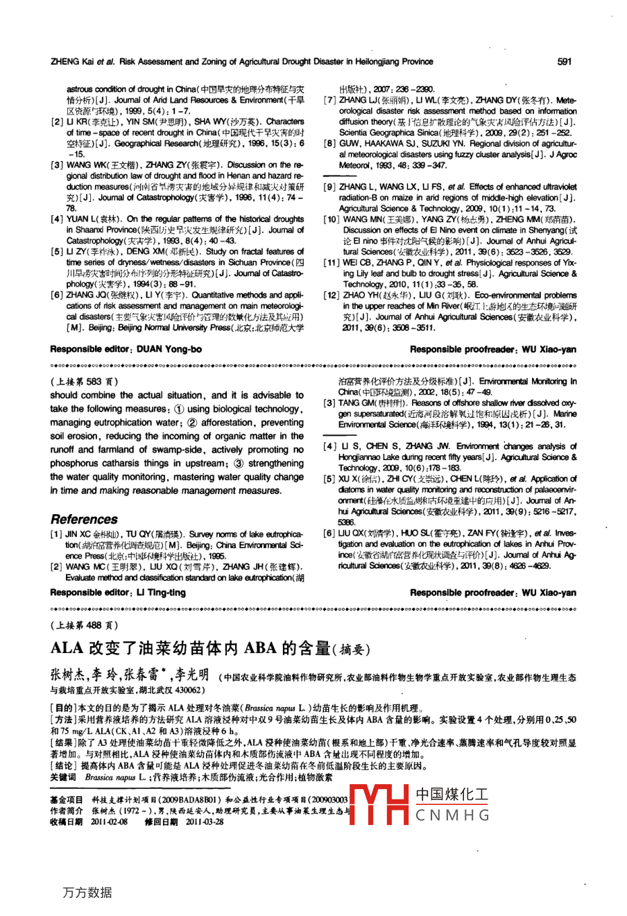 Agricutural Science & Technology, 2011, 12(4): 581 -583.591Copyright 02011, Information Institute of HAAS. Al rights reseved.Resources and EnvironmentRelationship between the Water Body Chlorophyll-aand Water Quality Factors of Wetlands BaiguishanReservoirSHE Qiu-sheng, TIAN Xun, WANG Guo-zhen, JI Xlao-cun, L Jlu-xuan, ZHAO Zhen "Department of Biological Engineering, Henan University of Uban Construction, Pingdingshan 467036Abstract [Objective] The aim was to explore the relationship between water body Chloroplhl-a and water quality factors of wetiands Baiguis-han reservoir. [Method ] Chlorophyl-a and water quality factors of water quality of Wellands BaiGuishan Reservoir was studied, the analysis ofthe relationship on water quality of Wetlands Baiguishan Reservoir was made by use of trophic status indices and SPSS17.0 statistical analysis.[ Result] Total phosphorus was an important factor of influence Chloropyl-a in reservoir, water body had slight eutrophication phenomenon inreservoir of July to October in 2010. [ Conchusioo ] Comprehensive management should be strengthened so as to improve the water quality ofshan WetlandBaiguishan VKey words Wetlands Baiguishan Resrvir;hoplyl-a; Water quality factors; RelationshipThe wetlands Baiguishan ( the Reservoir which was buit selected for fve sampling points: east, wsst, north andatifcially in 1965) is located in the mainstream of Huaihe Riv-south, and middle from Baiuishan wetland area (Fig. 1).er, the southwest area of Pingdingshan City, which is a floodThe sampling time and frequency: May 2010 to Octobercontrol, giving agricultural irigation, industrial and urban wa-2010, once a month.ter supply reservoir. Baiguishan wetland reservoir is an impor-tant part of the wetland resources in Henan Province. It pro-vides the drinking water to the local people, and plays an im-” Northportant role in maintaining ecological balance system and theSouthCenterprotection of biological diversity. In adition, it is the regulatorBaiguishan Reservoirof south-to-north water diversion project. Therefore, the stud-Westasties on dynamic monitoring of Baiuishan wetland reservoir cannot only provide the scientific basis for water qualiy protectionand ecological environment protection policies, but also enrichFlg.1 Sampling distribution of Baiguishan wetiand areathe ecological research database of midline of the south-to-Selection of monitorng projectnorth water diversion project.According to the national lake eutrophication surveyPhytoplankton plays an important role in the process ofstandard', and with reference to the surface water environ-material circulation, energy conversion in lake ecosystems,ment quality standards ( GB3838-2002) and other standard,and the Chloropyll-a (Chla) content in water is an evaluationaccording to the specific circumstances of Baiguishan wetlandof phytoplankton biomass, which is also the important index of area, the ammonia nitrogen (NHy-_N) . total phosphorus (TP)productivity and the number of algae, an important parameterand dissolved oxygen (OD), potassium permanganate indexof eutrophication. Therefore, we monitor the environmental(CODm) and chlorophyl a were detected and analyzed.factors index of wettand resevoir, survey the eutrophicationNutrition evaluationssituation and using mutiple stepwise regression analysis, findBased on the content of Chiorophyl-a, potassium pemanout the environmental factors which is significant correlationganate index, phosphorus index, according to the nutrition indexwith Chlorophyll-a and establish forecasting model to providecalculation formula to calculate TU (Chla), TU(COD) andthe scientific basis for the corresponding countermeasures to TU( TP), refer to the relative weight clculation fommula andprevent and control it.comprehensive nutritin exponential formulae, calculate compre-hensive nutritin index fomula; TU (Z) =TU (E) =Z W, xMaterials and MethodsTU(), the nutrtive ratio type of reservoir Baiguishan wet-Sampling place and sampling timeland was evaluated2lOn the basis of Water quality-guidance on sampling tech-Statistical analysesniques( GB1299891), according to the geographical charac-May to October,teristics and combined with the reservoir situation, surround-2010,中國煤化工n satistics method,ing humanity of Baiguishan wetland area, five directions werefour enTIYH.CNMHGhe ammonia nitrogenand phlate index and dis-Received: March 12, 2011Accepted: Apil5, 2011solved oxygen and algae Chlorophl-a) for stepwise regres-Supported by Natural Science Study Fund from the Department ofsion analysis, and the stepwise regression equation was e昭Education of Henan ( 2010B610002).tablished, and it was found that the significant environmental# Corresponding author. E-mail; zhaozhen@hnqj. edu. cnfactor that infuenced algae Chorplyl-a. Four environment582Agricultural Science & Technology Vol. 12, No.4, 2011factors were used as independent variables and algae Chloro-phyl-a was used as dependent variable to cary out statisticalLanalysis with SPSS 17. 0 and conclude the multiple stepwiseregression equation and complex correlation coefficient.. 。CanterResults and AnalysisTime-space distribution of physical and chemical indexesAccording to Surface Water Environment Quality Stand-aards( GB383888-2002 ) in China 91 , the test reults of monito-ring ammonia nitrogen, total phosphorus, potassium perman-MalyJuneJuly Agst Septa ber Octoberganate index and dissolved oxygen were shown in Fig.2 -5.Fig.4 Time-space distribution of Total PThe results showed that:①in monitored time, the ammonianitrogen and potassium permanganate indexes were growingup gradually, reaching the highest in August and declining af-ter;②in May to October of 2010, total phosphorus contentwas increasing, and reaching to its top in July;③the content- Canterof dissolved oxygen were declining, lowest in August and ris-ing after;④the dissolved oxygen saturation locus might occurdue to lower water temperature, less oxygen consumed bymicroo