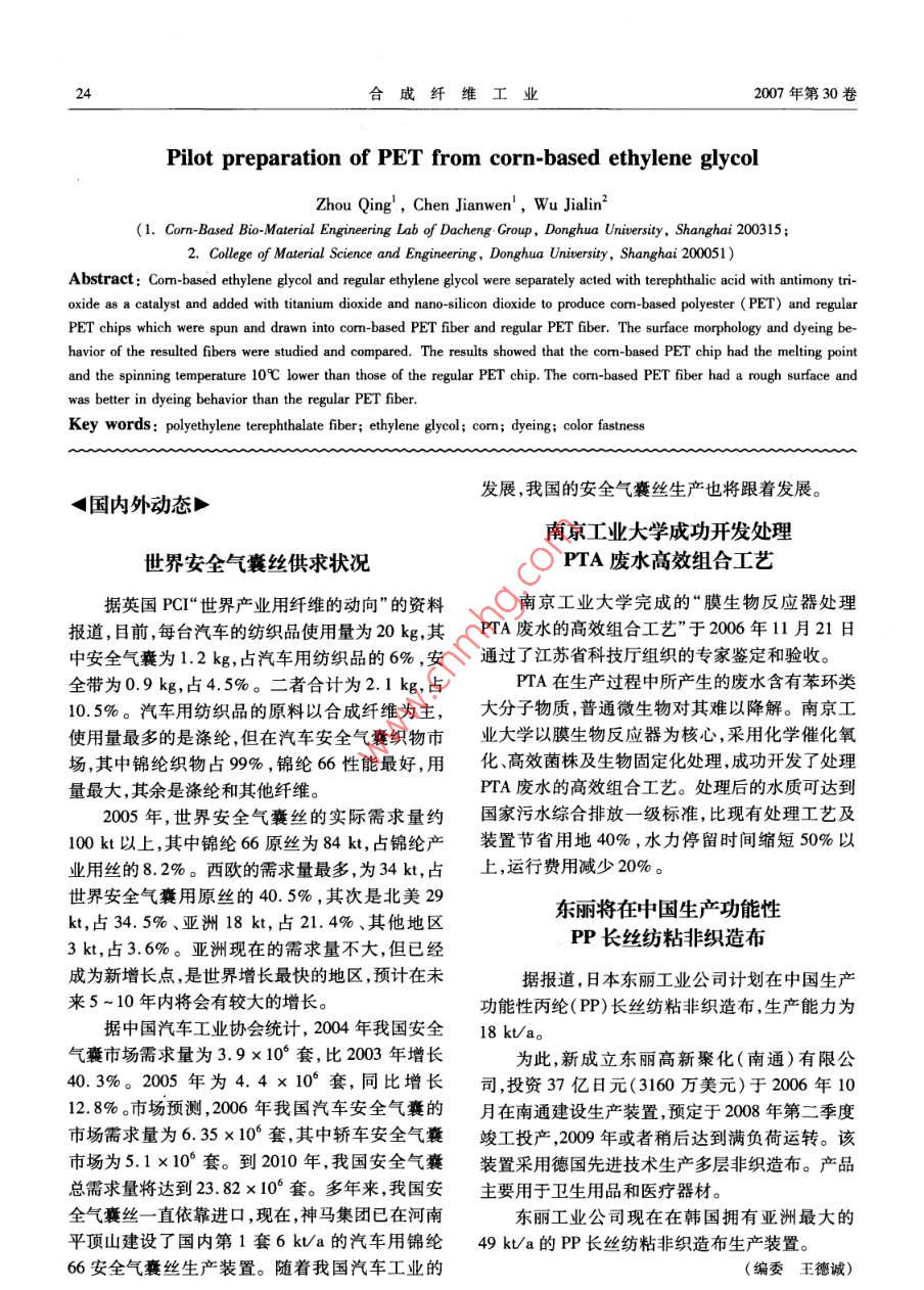 - 作者單位:東華大學(xué)大成集團(tuán)玉米基生物材料實(shí)驗(yàn)室,東華大學(xué)材料學(xué)院